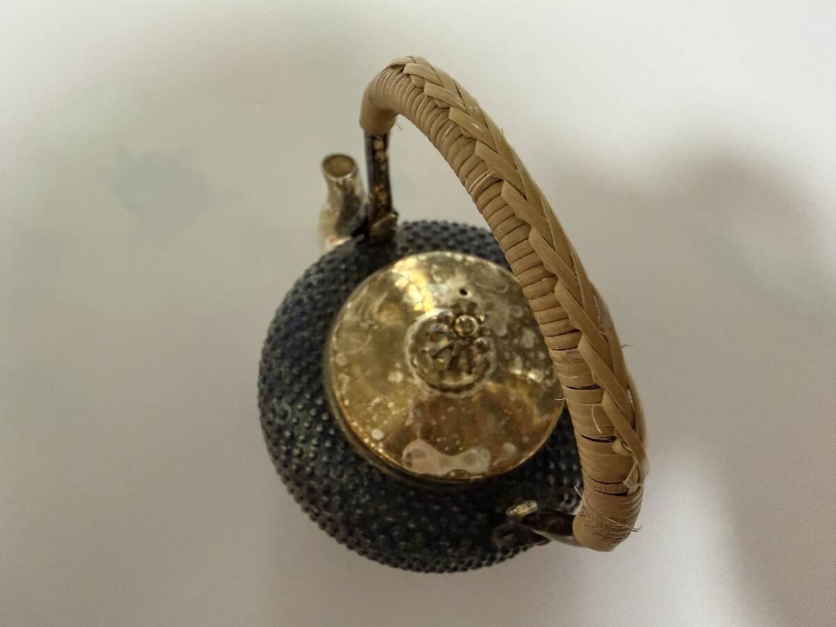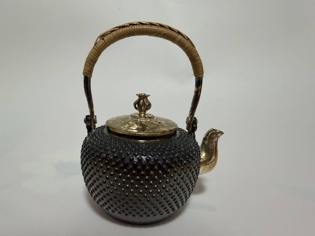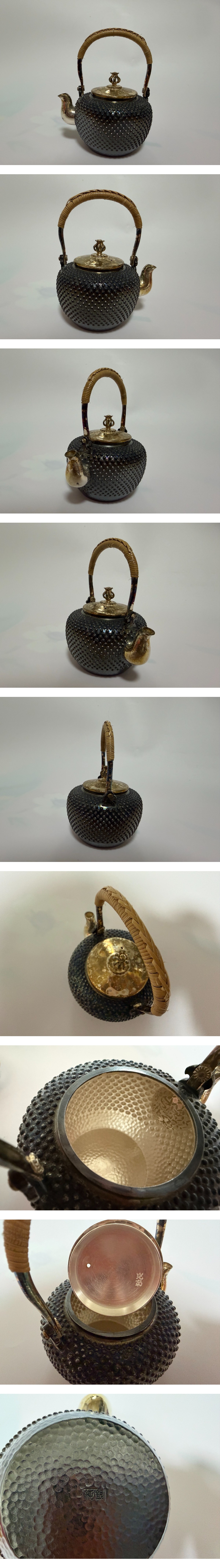時代 純銀製 光南造 玉霰打出 蕾摘 急須 工芸品 美術品 銀瓶 煎茶道具