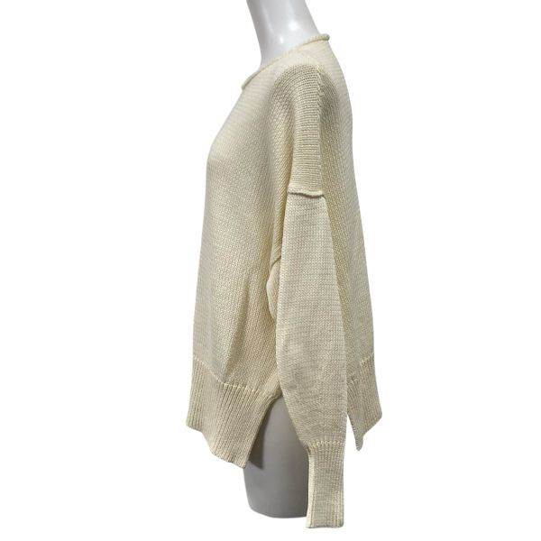 ニットプルオーバー セーター 長袖 クルーネック ドロップショルダー サイドスリット トップス オーバーサイズ ゆったりめ
