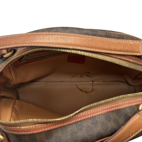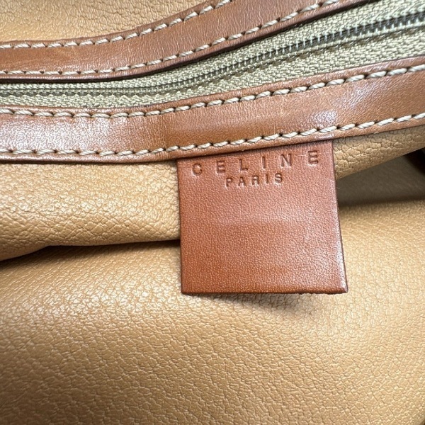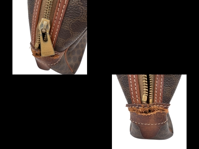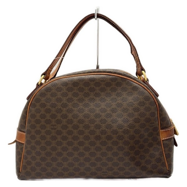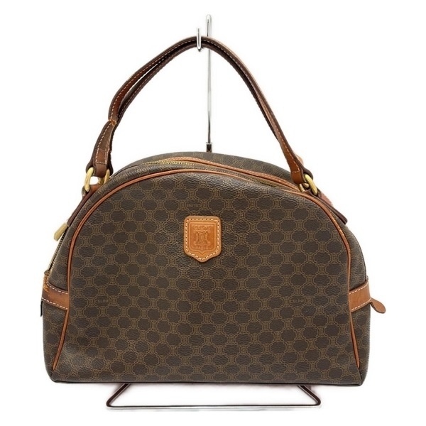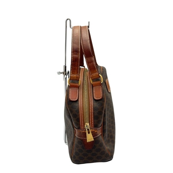 セリーヌ CELINE ハンドバッグ マカダム柄 レザー ダークブラウン×ブラウン ファスナー根本破れ バッグ