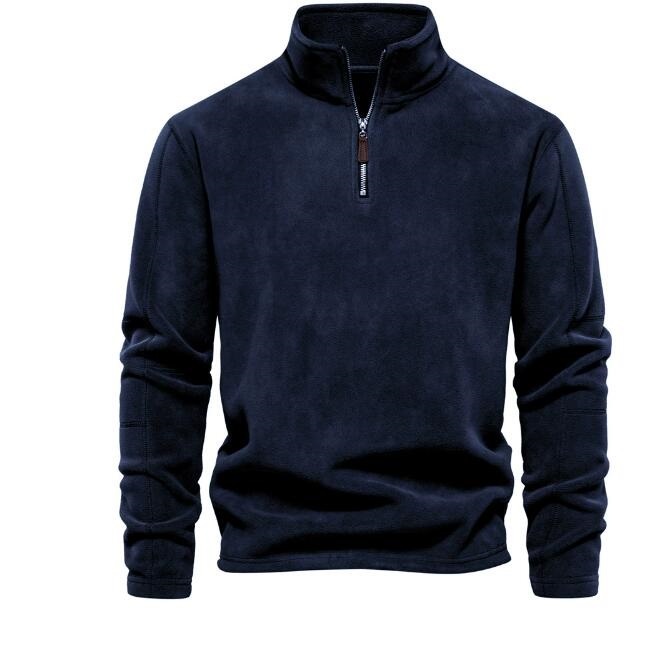 上質フリース ハーフジップ トレーナー メンズ ゴルフウェア 防寒 厚手 無地 秋冬 プルオーバー トップス ネイビー/L