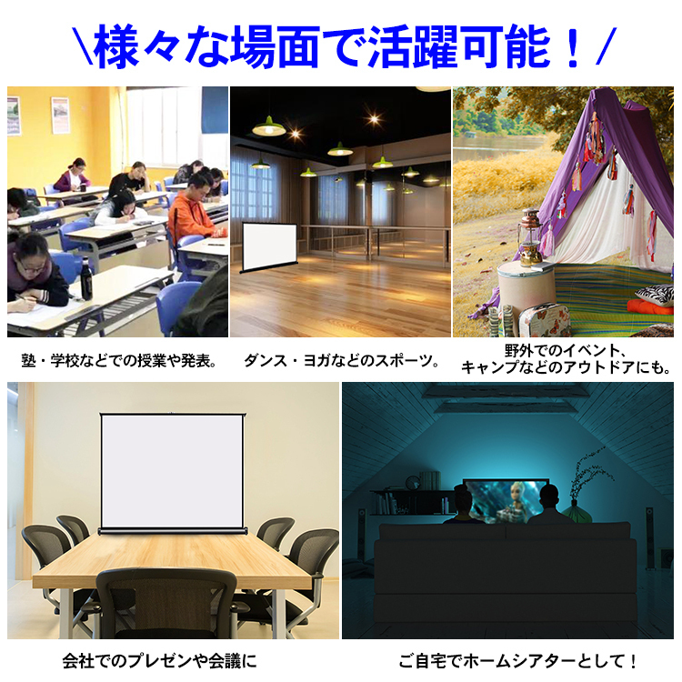プロジェクタースクリーン 50インチ ワイド 16:9 自立式 床置き式 卓上 机上 小型 ブラックマスク ホームシアター スポーツ ny390
