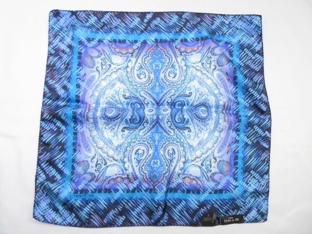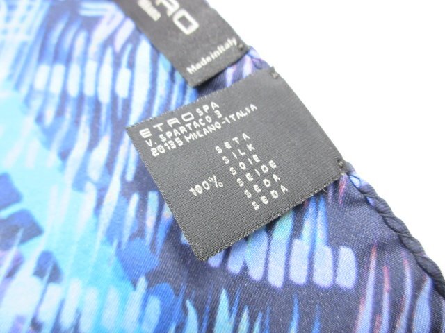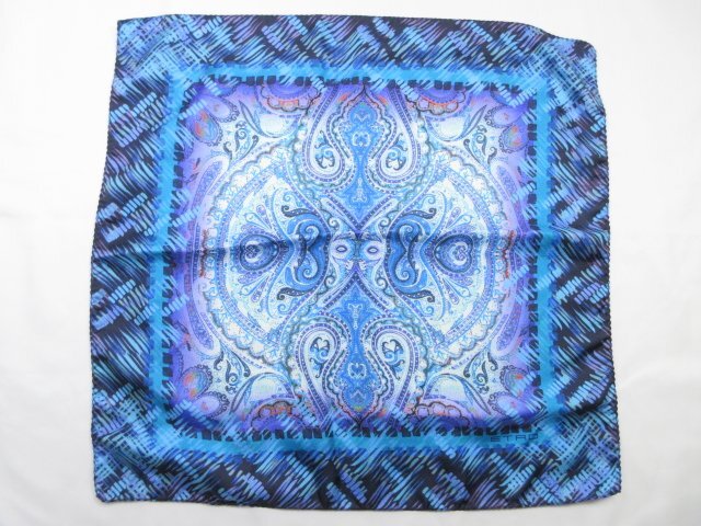 未使用【エトロ ETRO】お洒落なペイズリー柄♪ シルクチーフ (メンズ) 微光沢のあるダークブルー系 イタリア製 ◇39ME8079◇