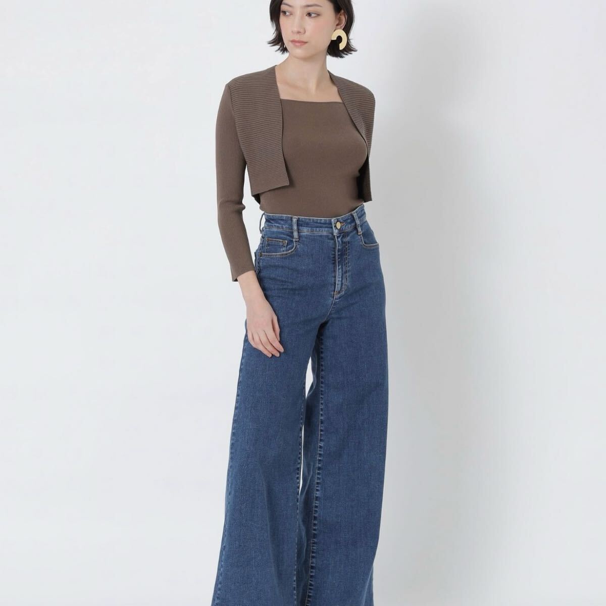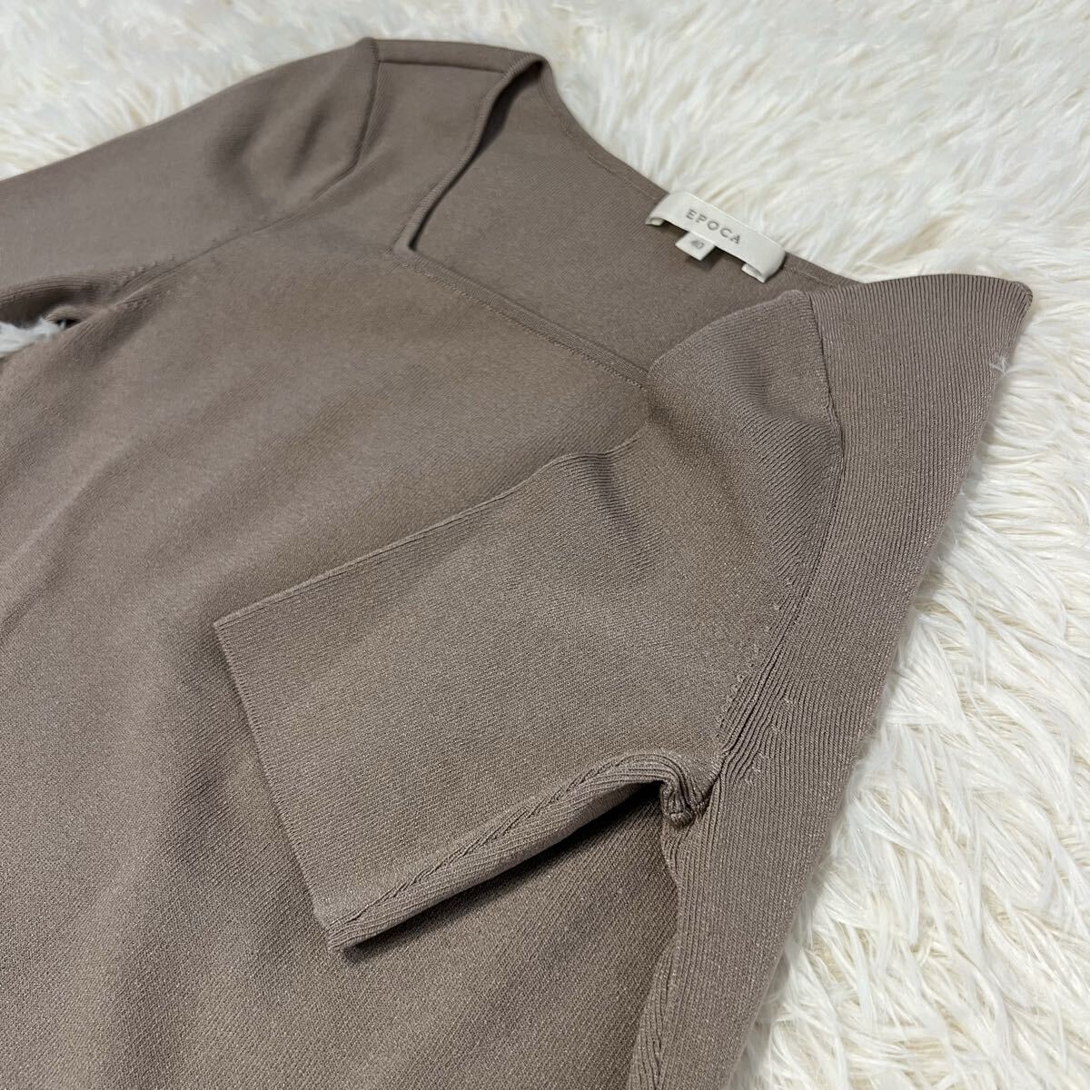 身体のラインに沿うシルエットで、着るだけでどこか女性らしいムードに。スクエア型の襟あきが、胸元を綺麗に演出してくれます。しっとりした風合いで、着心地の良さも特徴です。ジャケットのインナーとしても活躍する1枚です。