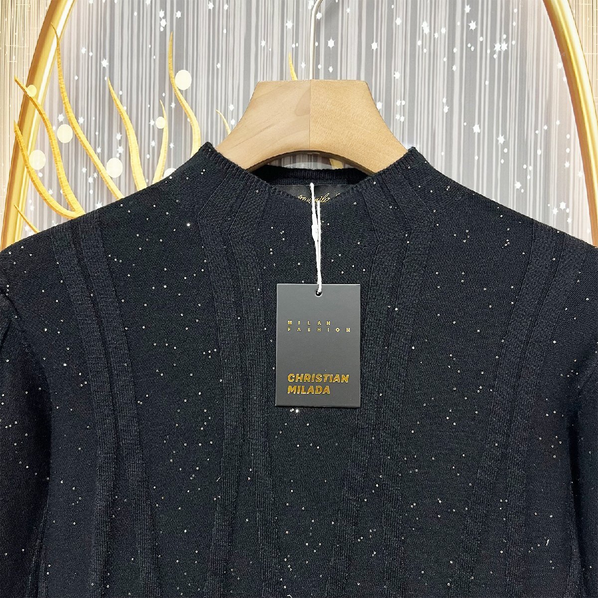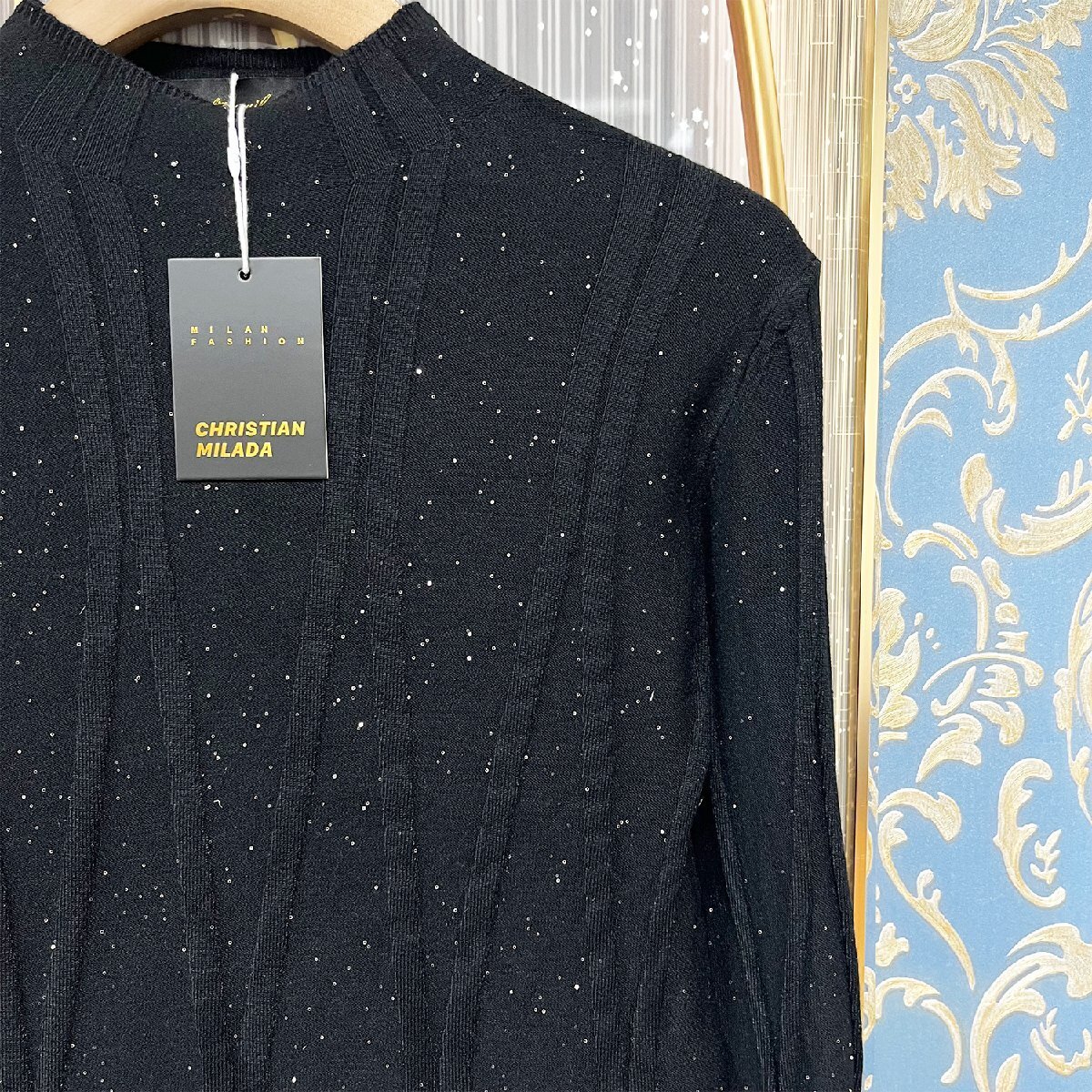 定価4万★christian milada・ミラノ発・セーター★ウール混 ニット 柔らか スパンコール 定番 スリム ブラウス トップス 日常着 レディース S/34サイズ