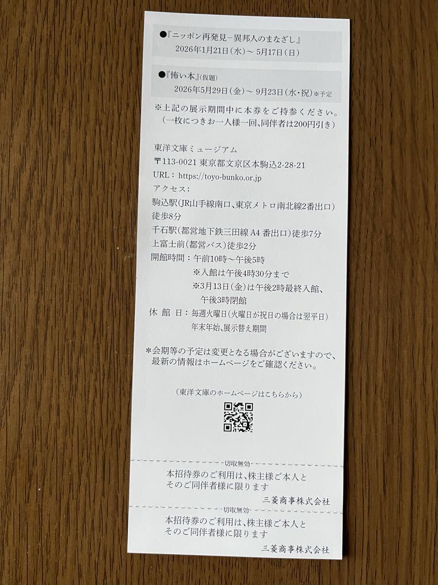 東洋文庫ミュージアムの無料ご招待券2枚セットです。