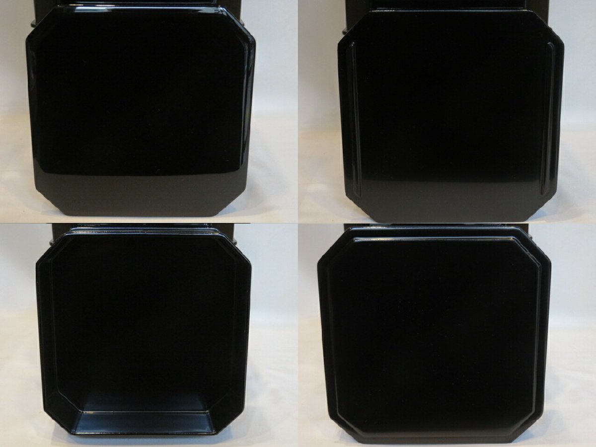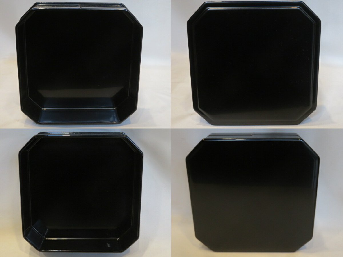 利休形と呼ばれる真塗縁高が基本とされ、五寸角に角切角の高さ二寸五分の縁が付き、胴紐と綴目があります。
