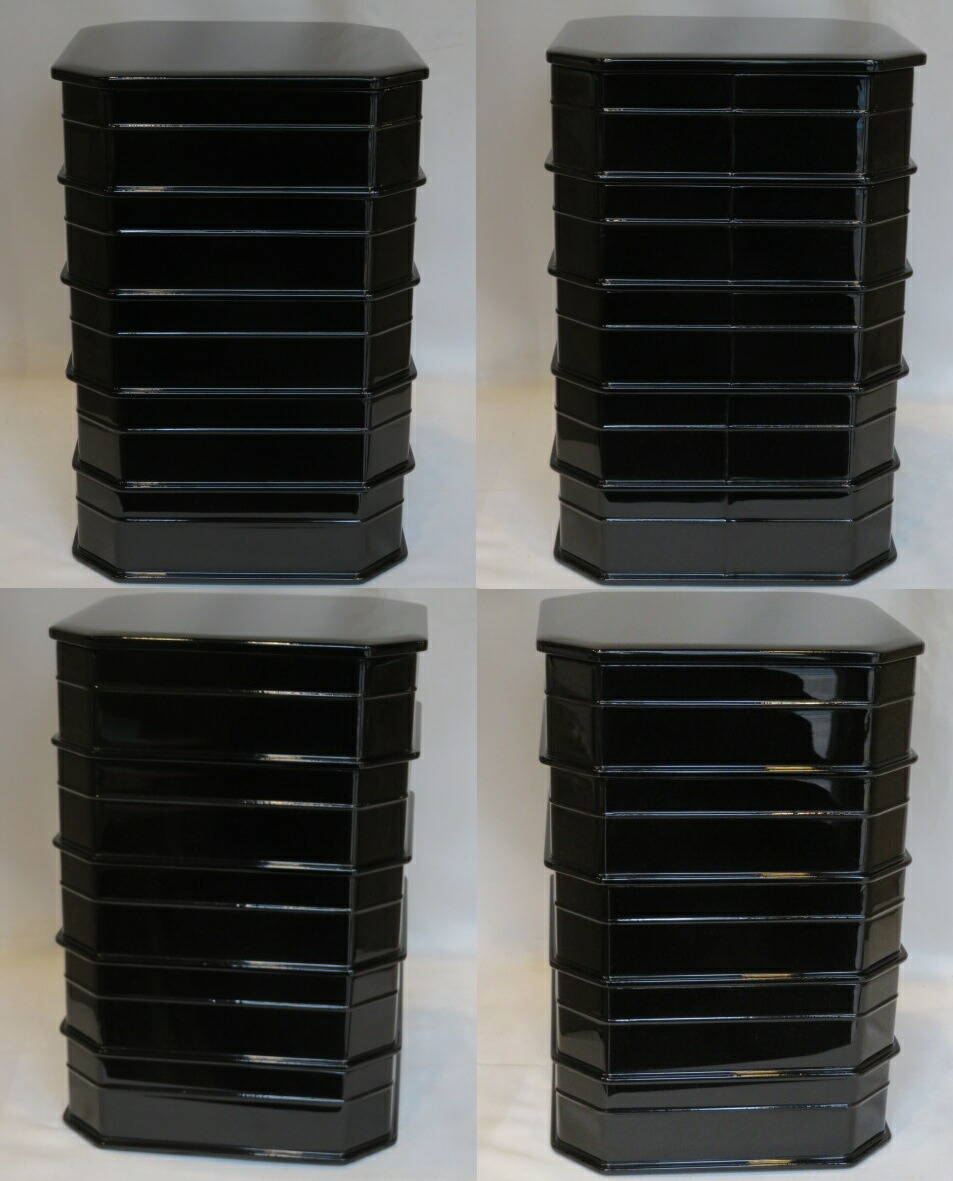 菓子椀に代わる正式な主菓子器で、折敷の縁を高くした形のものを、通常五つ重ねて一組とし、最も上に一枚の蓋(総蓋)が添います。