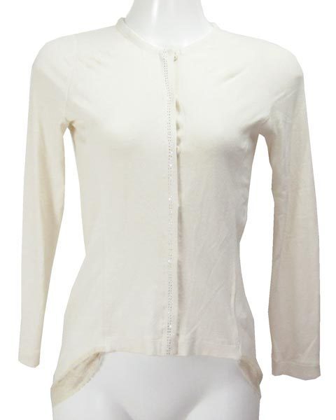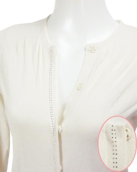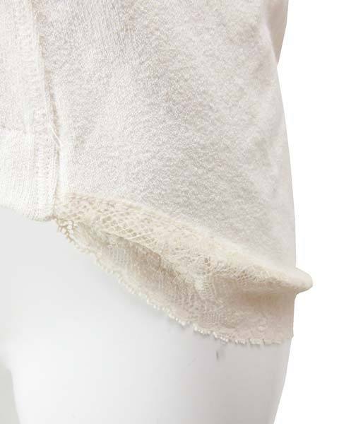 | 伸縮性のあるフェミニンなカーディガン。後身頃が長めのお丈になっています。レースやラインストーン使いが華やか。インナーやボトムスを選ばない重宝するアイテムです。小柄や細身の方でしたら大人の方も着て頂けます。 |