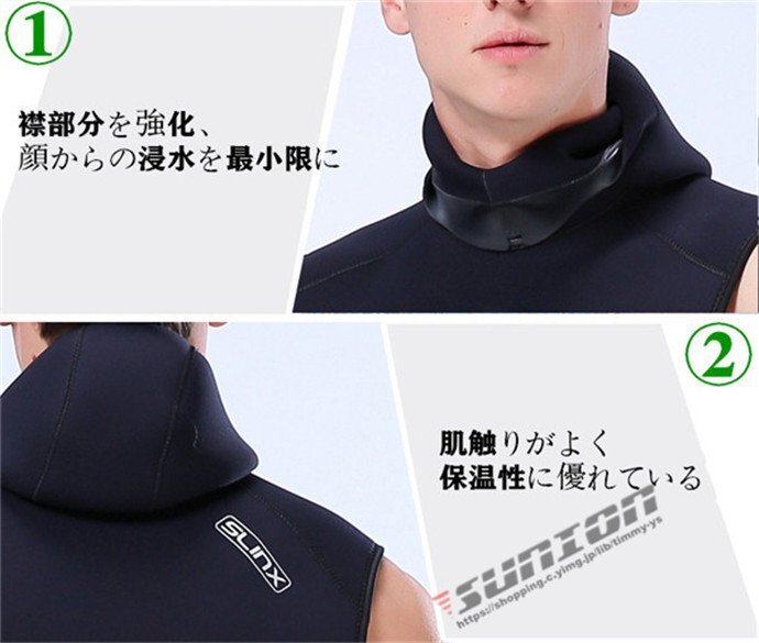 ウェットスーツ メンズ ベスト 3mm サーフィン ダイビングウェットスーツ ネオプレーン フード付き 釣り