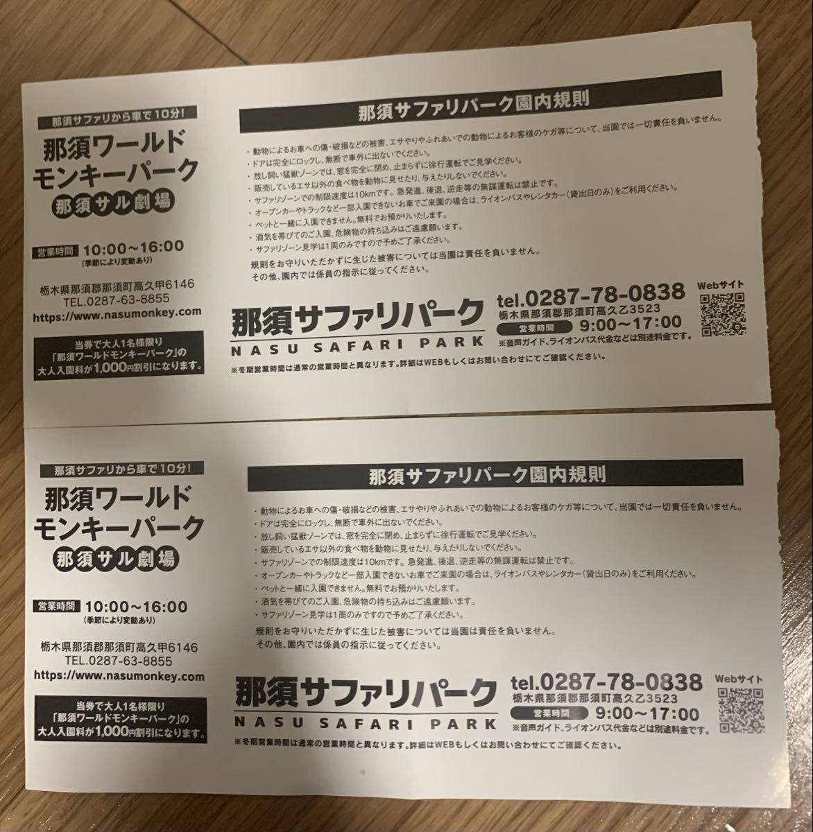 那須ワールドモンキーパーク入場割引券