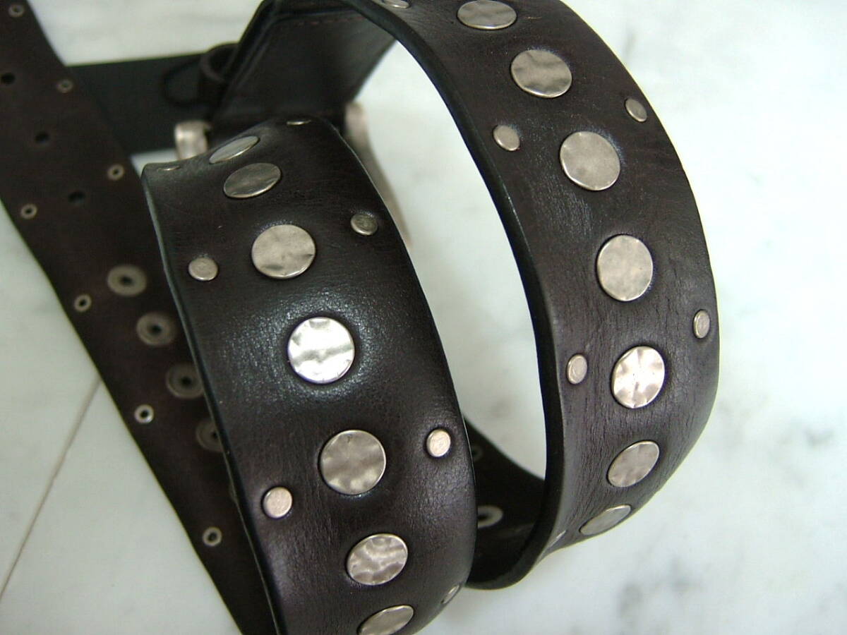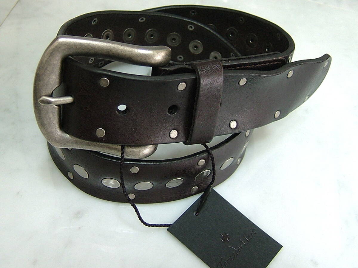 新品 トルネードマート茶皮革レザースタッズベルトTORNADOMART675