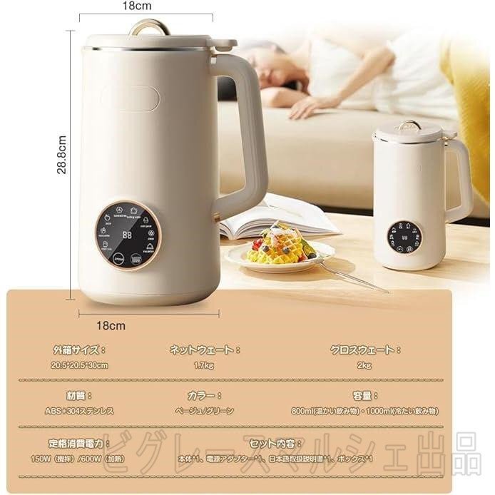 0.8L/1L大容量:出来立ての豆乳で良質なタンパク質と食物繊維を摂取でき、新鮮な大豆や野菜など具材に熱を加えて攪拌まで全自動で調理してくれるので、約28分で本格的な豆乳、ポタージュが作れます。容量は800ml(温かい飲み物)・1000ml(冷たい飲み物)で一度に軽めの3~5人分は作れます。