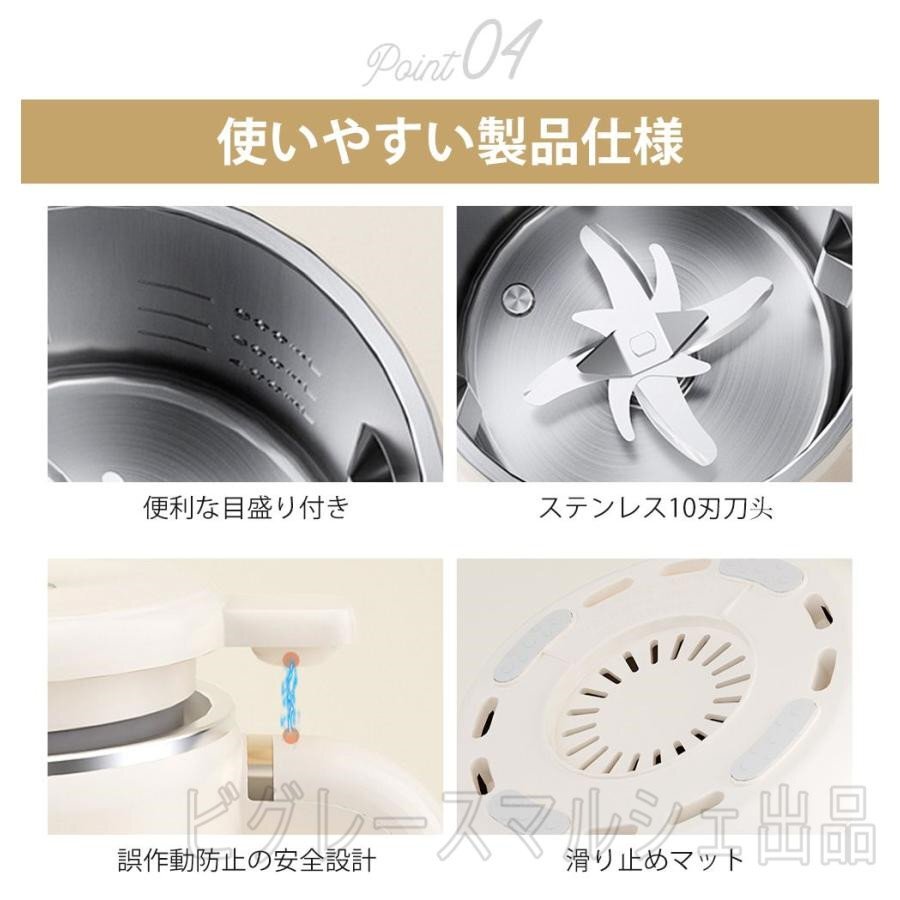 適用対象:豆乳や新鮮なフルーツジュースの製造は健康的な選択肢です。豆乳が好きな人、果物や野菜が好きでない子供、栄養を手軽に補いたい人、赤ちゃん用の食品を作る人、歯が弱いお年寄りのために食事を作る人などにおすすめです