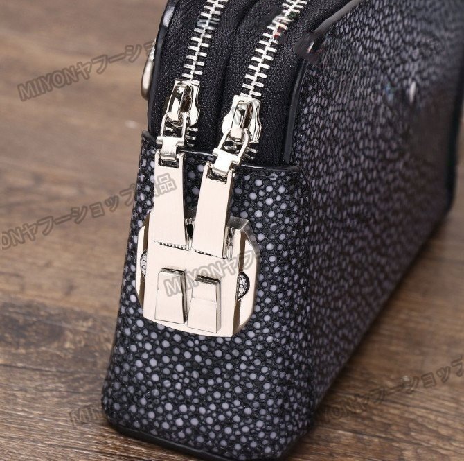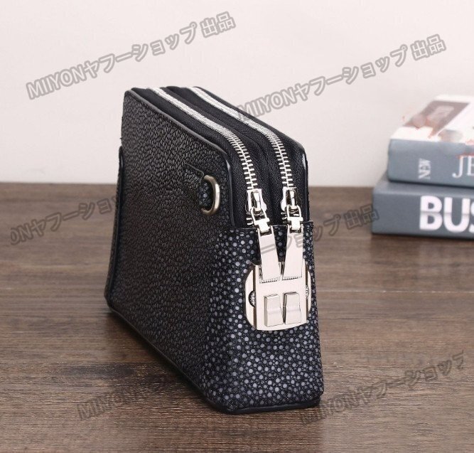 多機能 エイ革! スティングレー ガルーシャ レディース 2WAY ショルダーバッグ メンズ ハンドバッグ クラッチバッグ セカンドバッグ lhw176