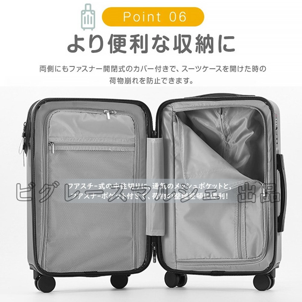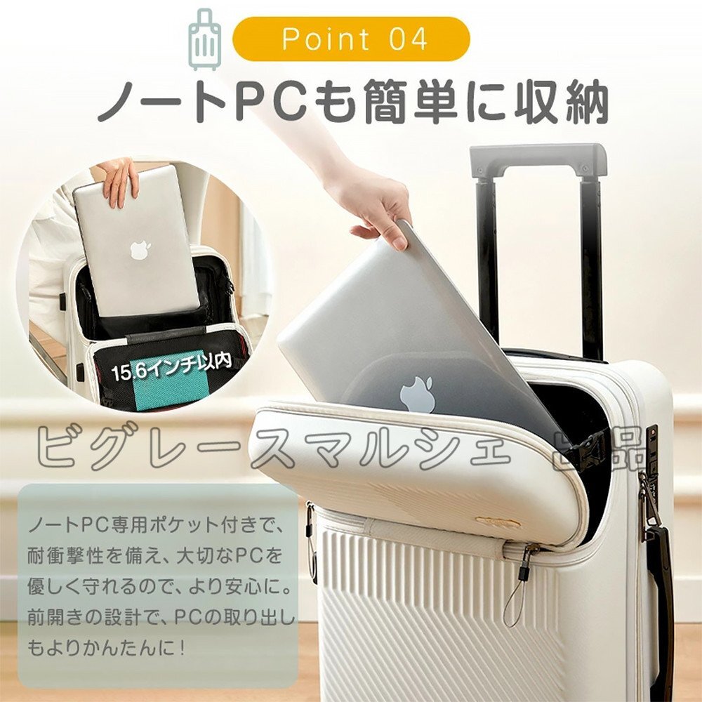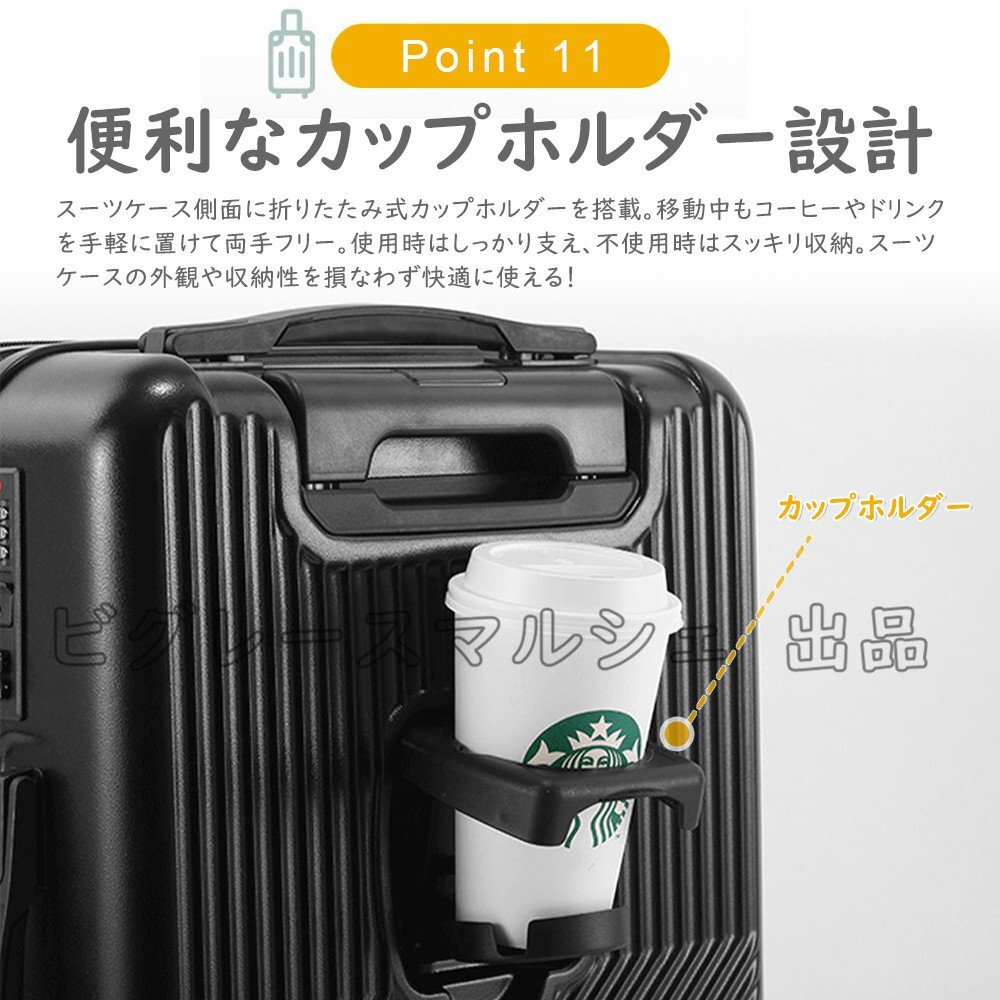 スーツケース 機内持ち込み 軽量 キャリーケース Mサイズ USBポート カップホルダー フック搭載 旅行 46L フロントオープン hw1368.wt.M