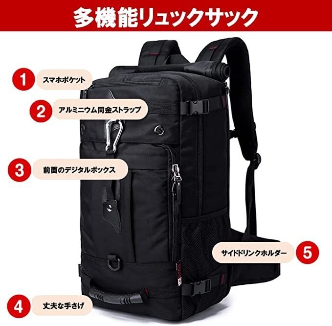 アウトドア リュック 40L バックパック 防災 登山リュック 男女兼用 大容量 旅行 遠足 レディース 男女兼用 ブラック hw257bk