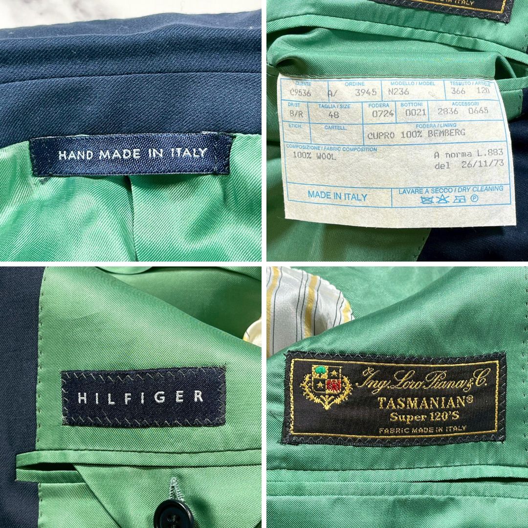 極美品/タスマニアウールSuper120s/48(L)●ロロピアーナ Loro Piana 紺ブレザー 金ボタン テーラード ネイビー 緑 イタリア製 メンズ 羊毛