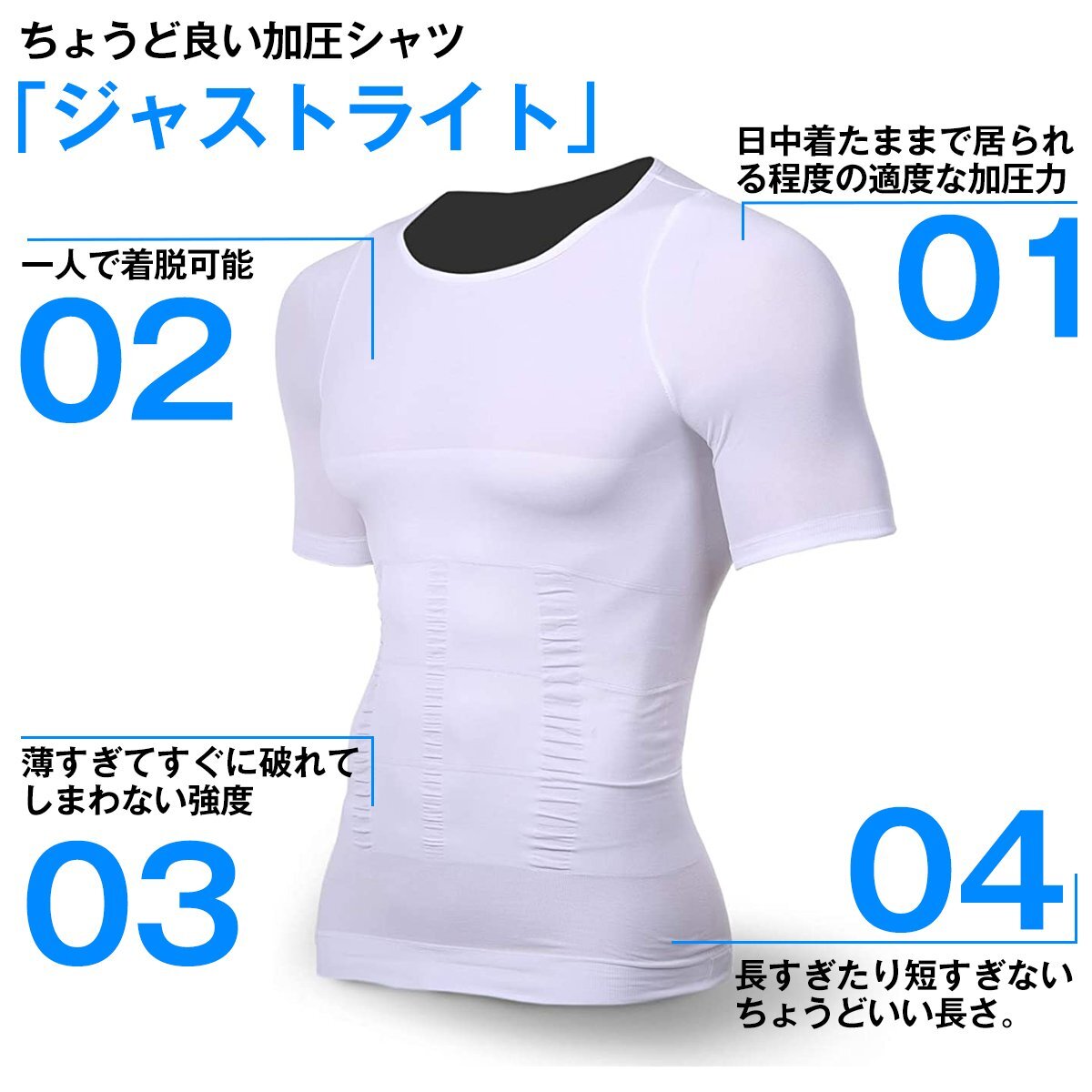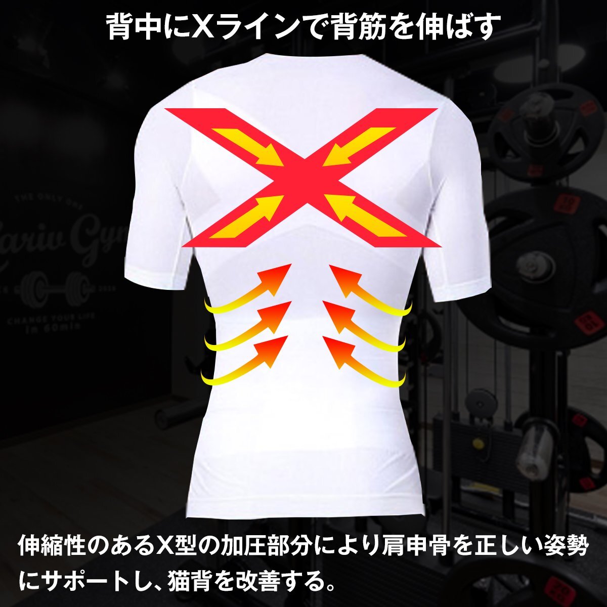 【新品即納】加圧インナー Tシャツ 姿勢強制 腹筋引締め 加圧シャツ Mサイズ ホワイト/白