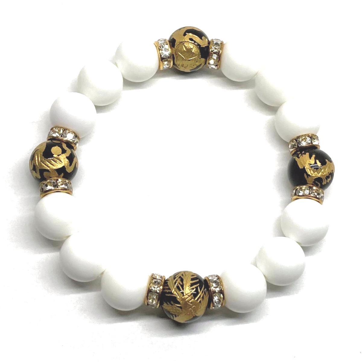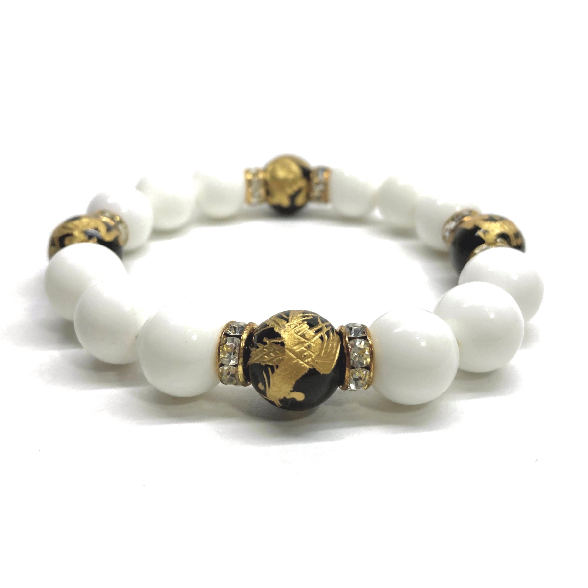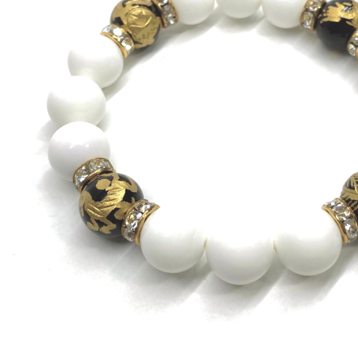 こちらは、四神獣金彫オニキとホワイトオニキスを組み合わせたパワーストーンブレスレットです。四神獣は、中国の伝説で4つの方向(東西南北)を守護する神聖な神。四神獣、厄災から身を守り、多くの運気を呼び込むと言われております。石大きさは程よくインパクトのある12mm玉で内周 約17cmです。 数に限りがございますので気になる方はお早めにどうぞ。