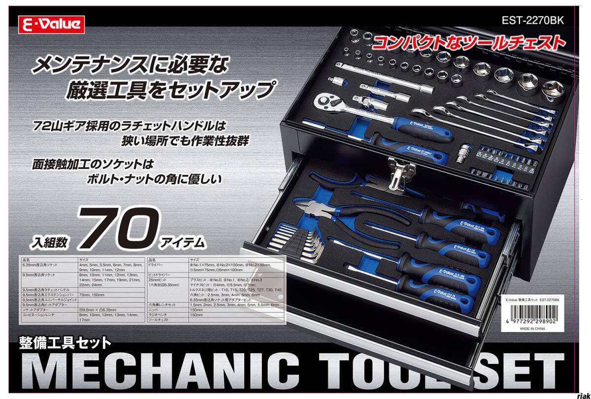 【初心者でも扱いやすく、プロでも使える実用的な構成】 70点工具セット ツールボックス DIY工具 メンテナンス バイク整備