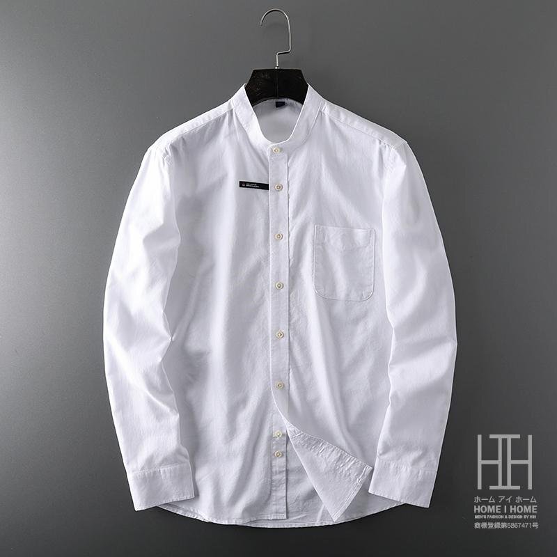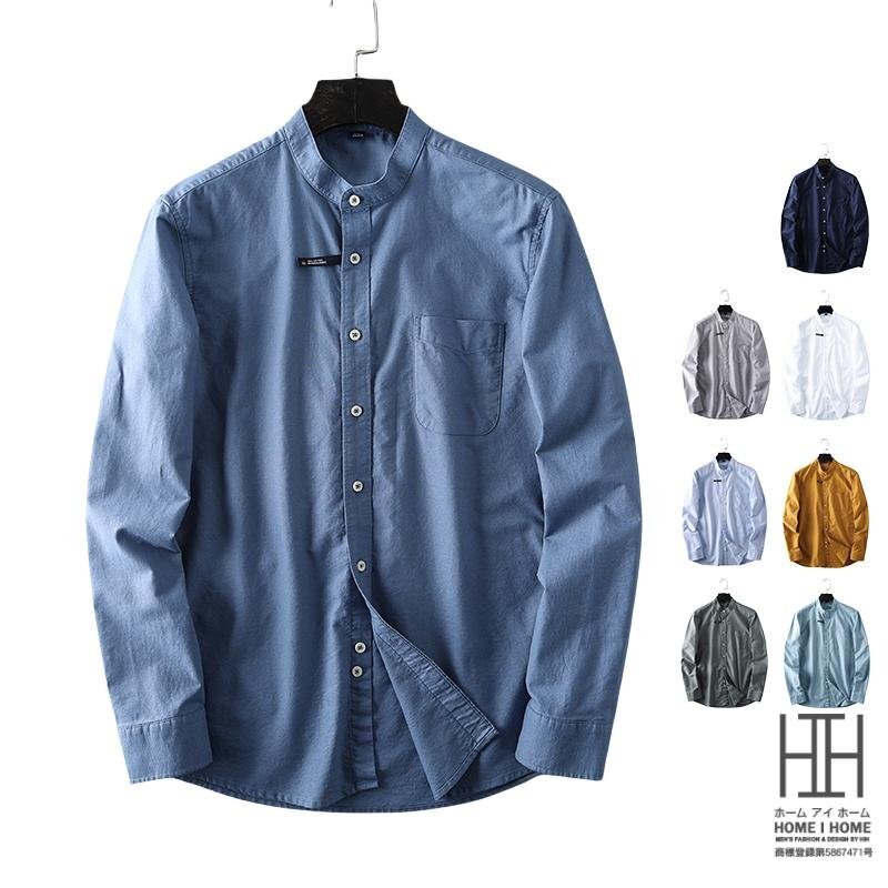 シャツ メンズ バンドカラーシャツ 長袖 カジュアルシャツ 無地 シンプル ノーカラー スタンドカラーシャツ