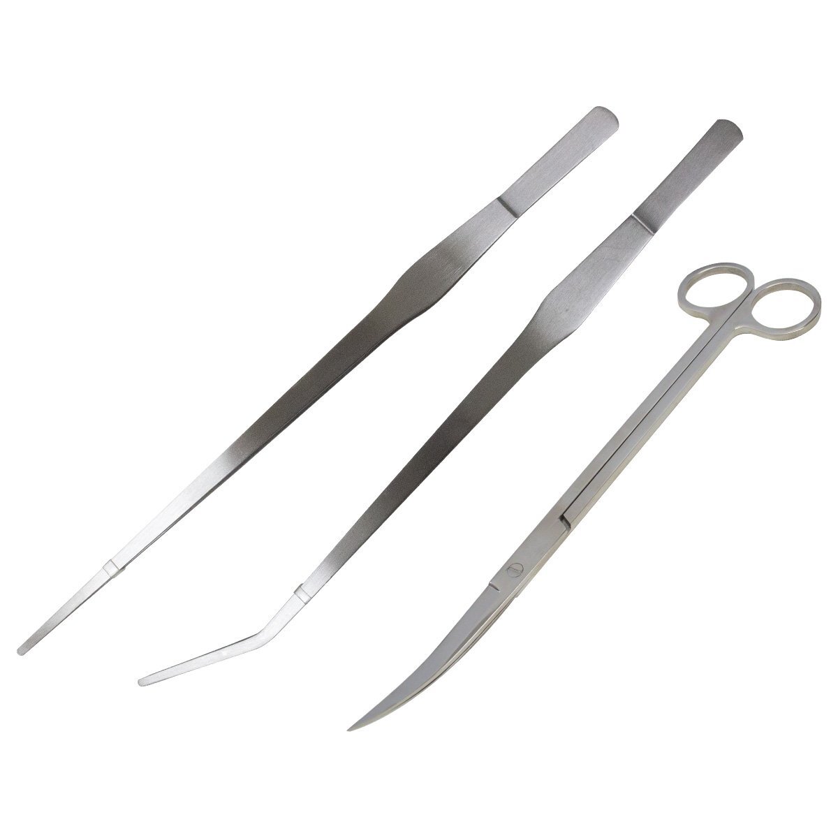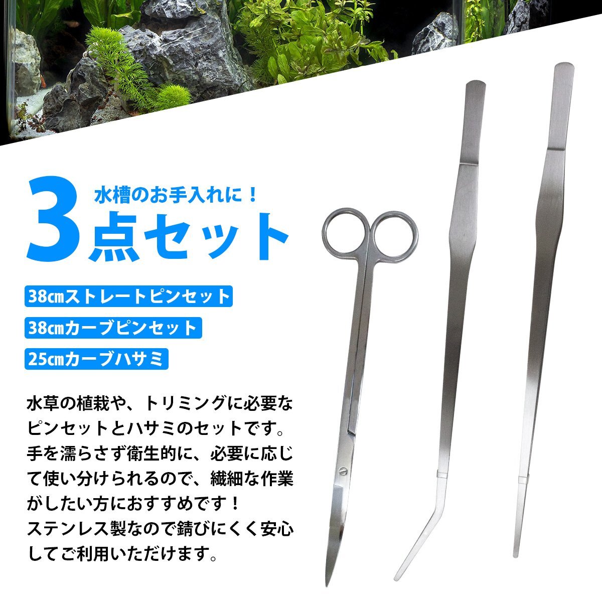 3点セット 『25cm ハサミ & 38cm ピンセット2種類 ストレート カーブ型』 水槽 水草トリミングキット