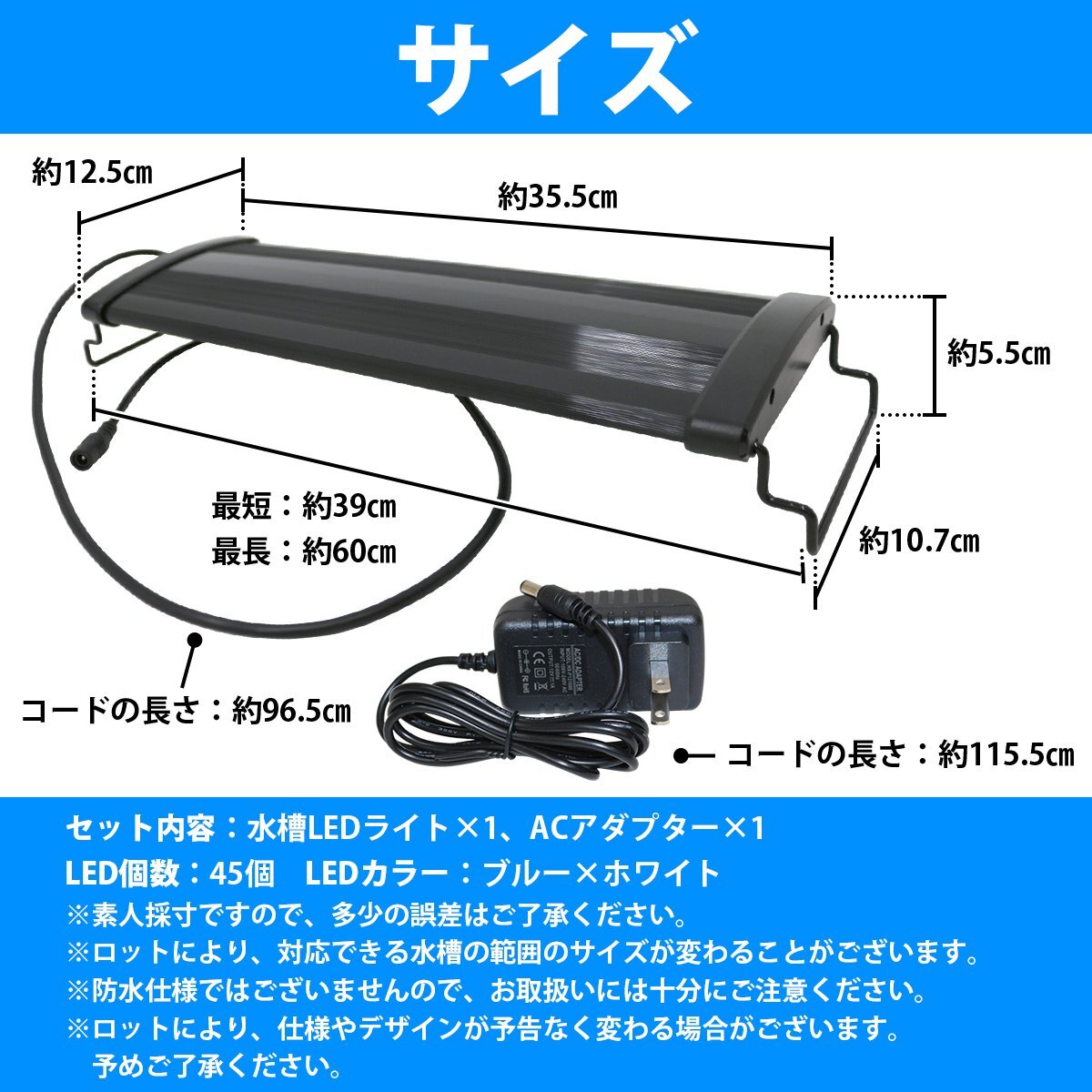 【新品即納】40cm~60cm 青/白 水槽 LED 照明 伸縮プレート型 薄型スリムタイプ 水槽 プレート ライト サンゴ 熱帯魚 アクアリウム ライト