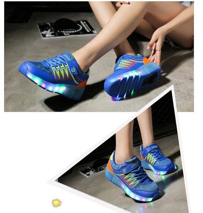 1スタ☆光る☆LED ライトアップスニーカー&ローラーシューズ 一体型 【K-162ブルー 19cm】夜間 スケート靴 反射材 ジョギング 自転車