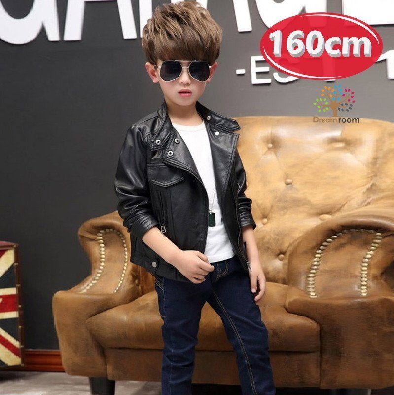 1スタ☆kids boy 2way ライダースジャケット 【ブラック 160cm】 韓国子供服 レザー ハード ライトアウター K-265