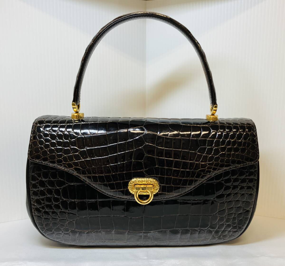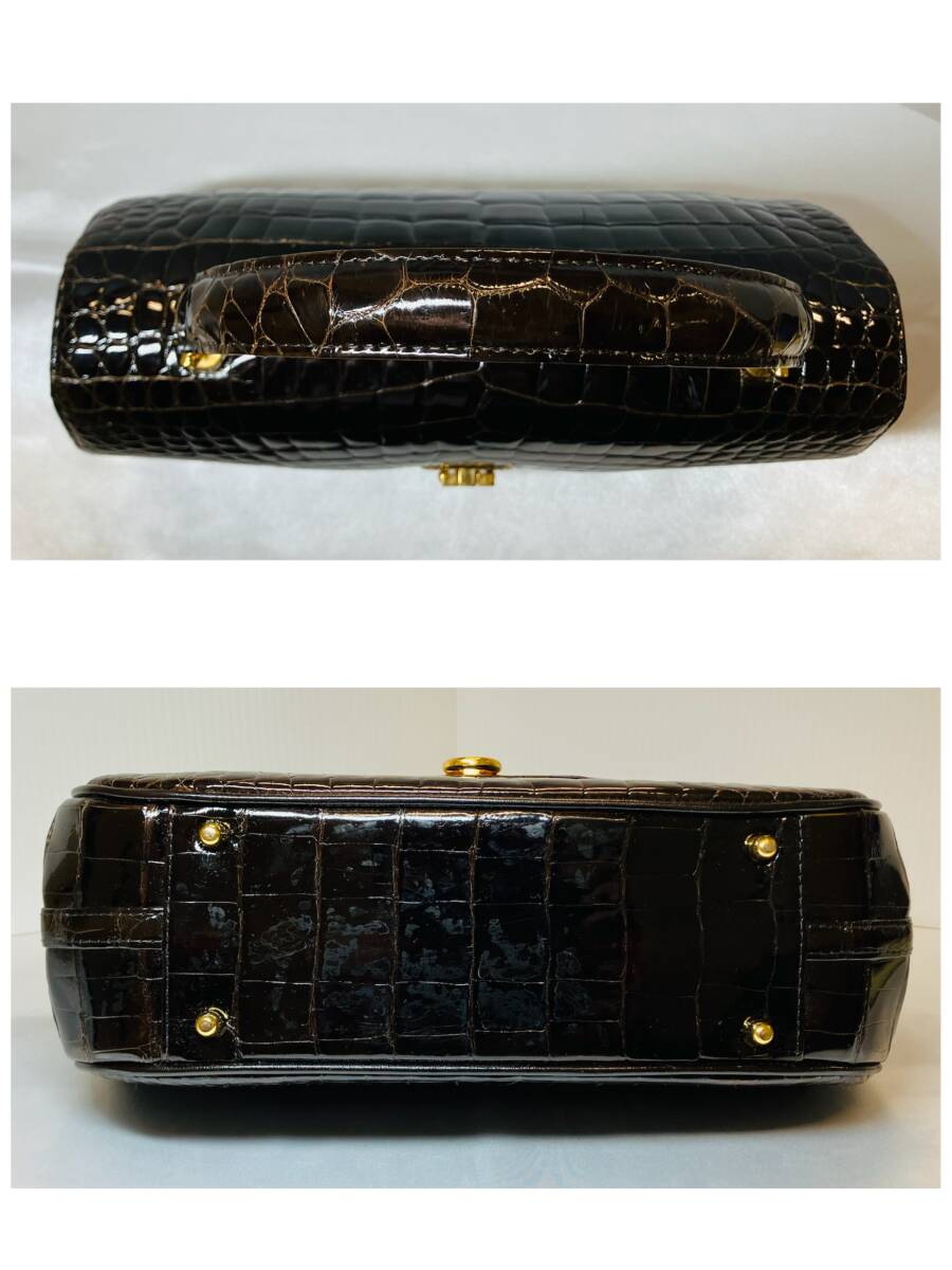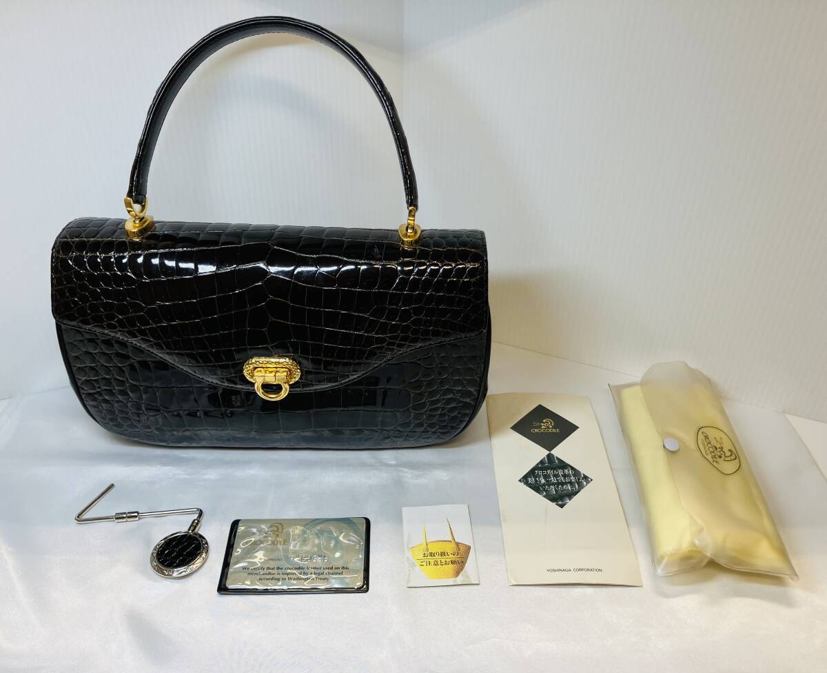 〇 1円~ YOSHINAGA ヨシナガ リアルクロコダイル シャイニング クロコ ハンドバッグ ブラウン ワニ革 レザー 現状品 鰐革 センター取