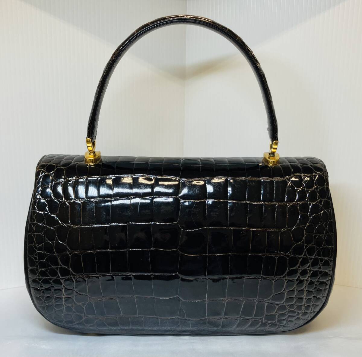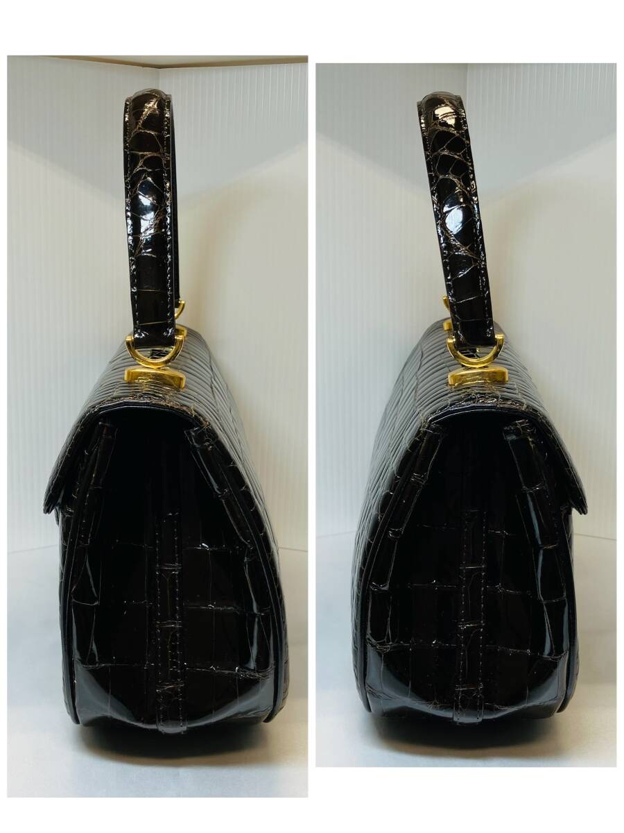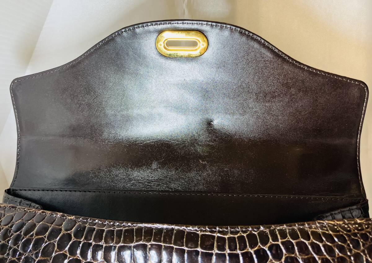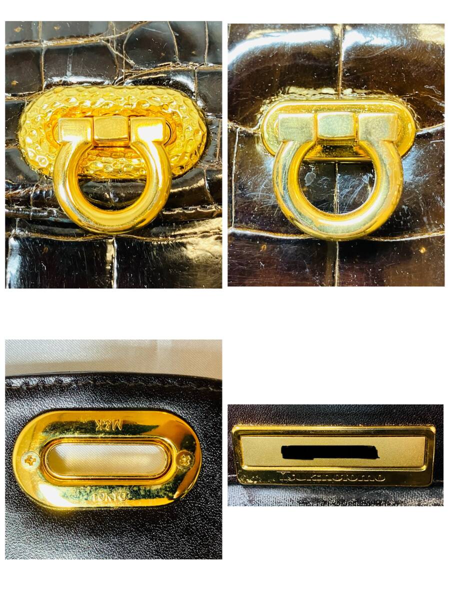 〇 1円~ YOSHINAGA ヨシナガ リアルクロコダイル シャイニング クロコ ハンドバッグ ブラウン ワニ革 レザー 現状品 鰐革 センター取