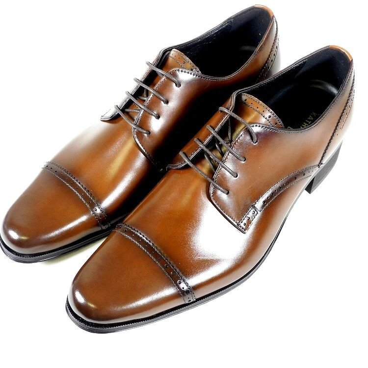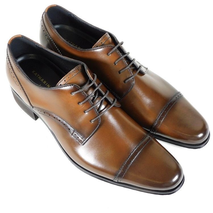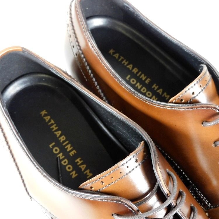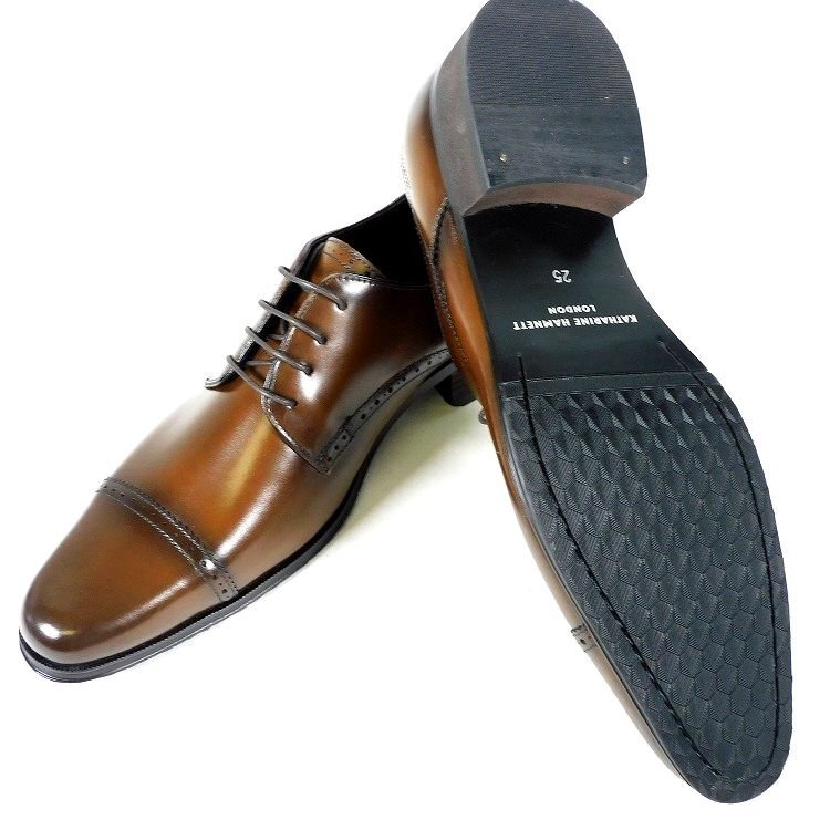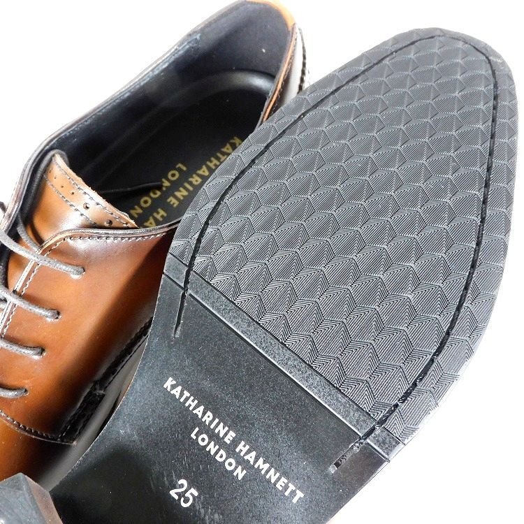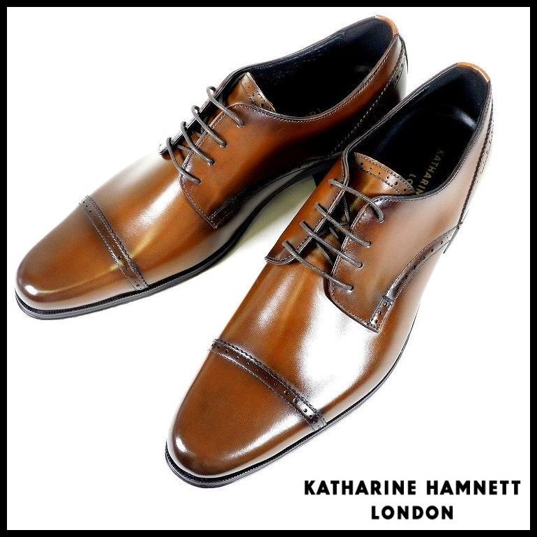 新品 1円~ KATHARINE HAMNETT LONDON 外羽根式 ストレートチップ セミブローグ 25cm 濃茶 キャサリンハムネット メンズ【5072】