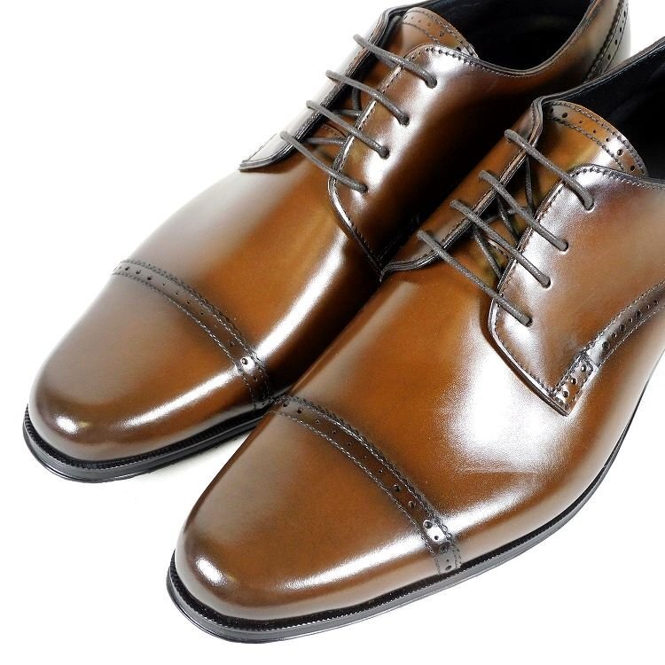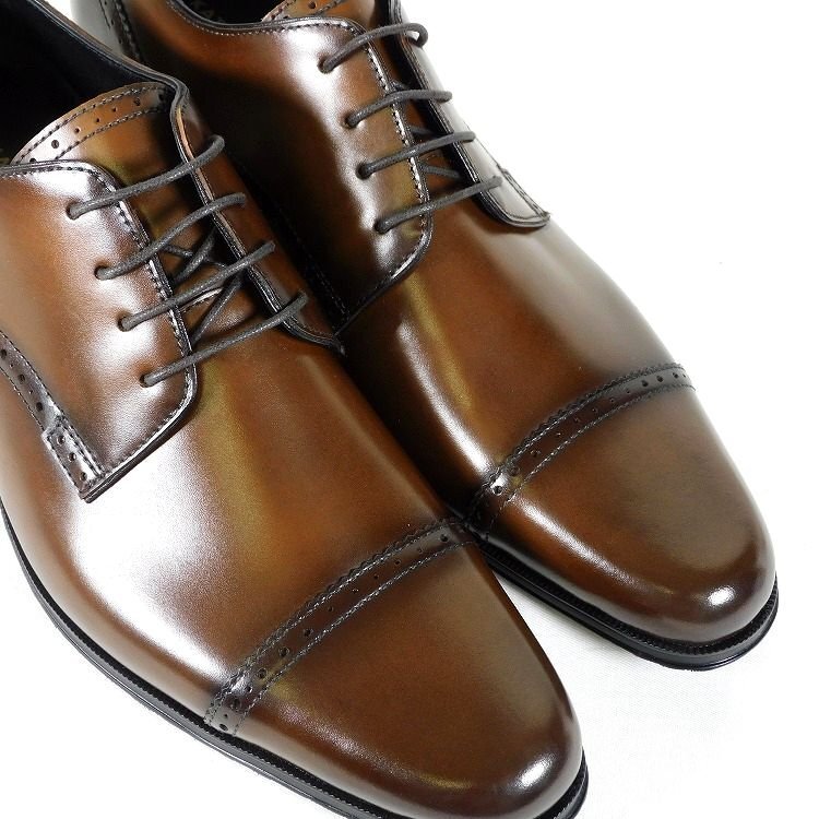 外羽根仕様による優れたフィット感と履きやすさに加え、つま先のストレートチップと控えめなブローグ(穴飾り)が、