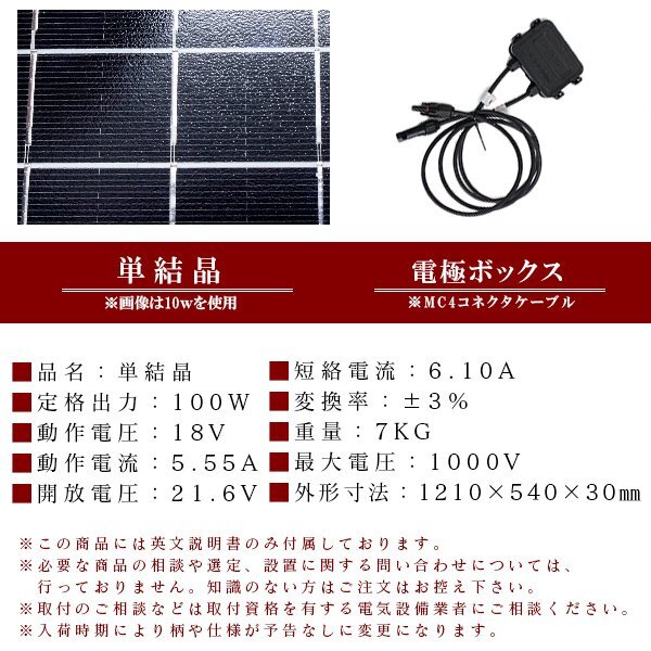 【送料無料】『100W』単結晶 ソーラーパネル アルミフレーム キャンピングカー トラック 船 太陽光 充電 蓄電 チャージ 1210x540×30