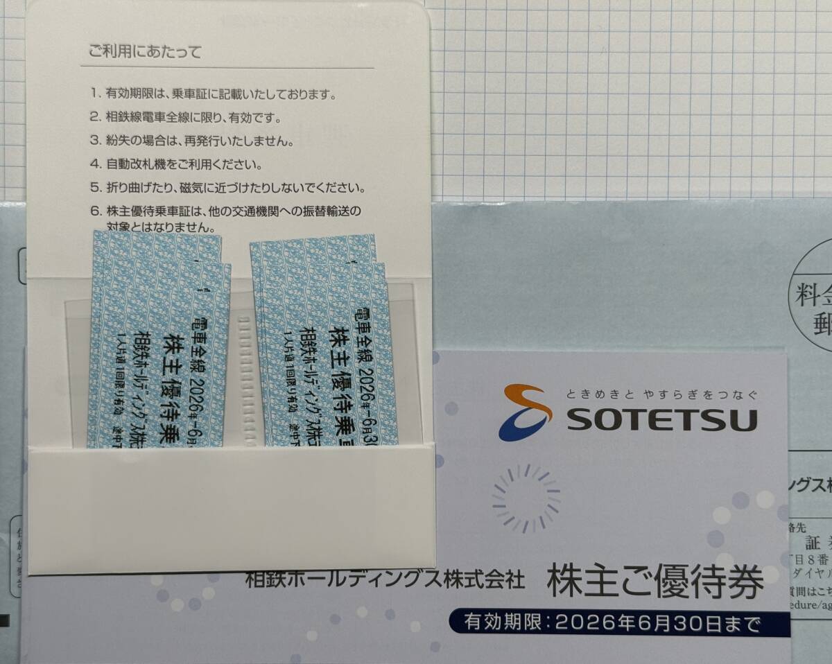株主ご優待券1冊と株主優待乗車証6枚(2026/6/30まで