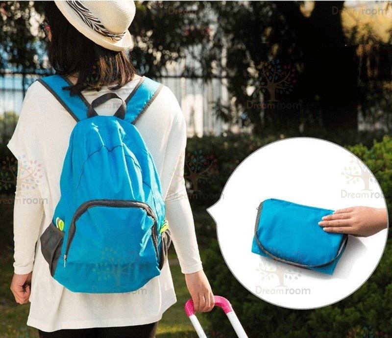 大容量 折りたたみ式 リュック 【ブルー】 軽量 アウトドア 旅行 コンパクトに折りたためる!