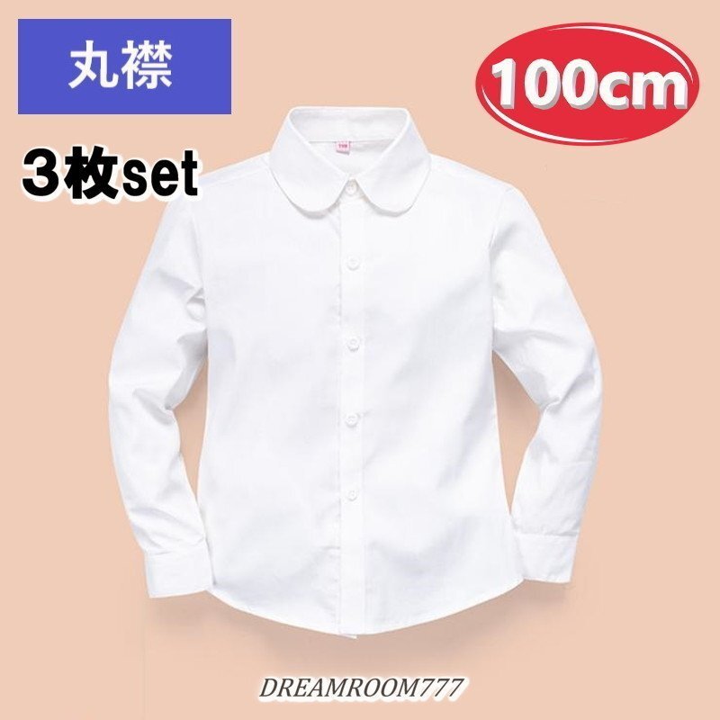 お得な3枚set★綿100% 丸襟 ブラウス【100cm】ワイシャツ 白シャツ 学生服 フォーマル 冠婚葬祭 制服