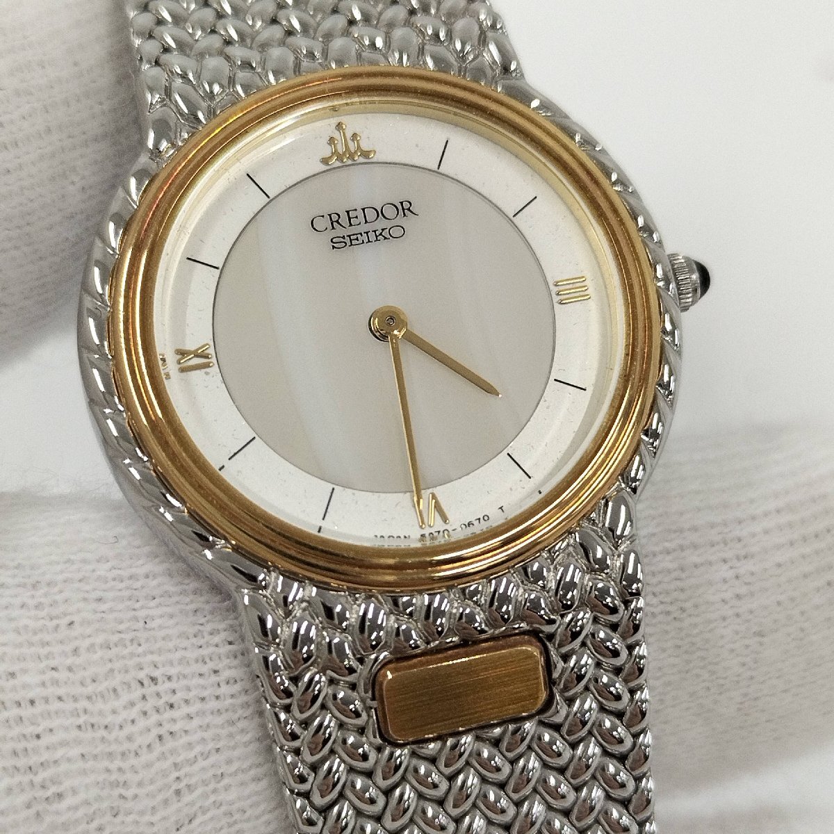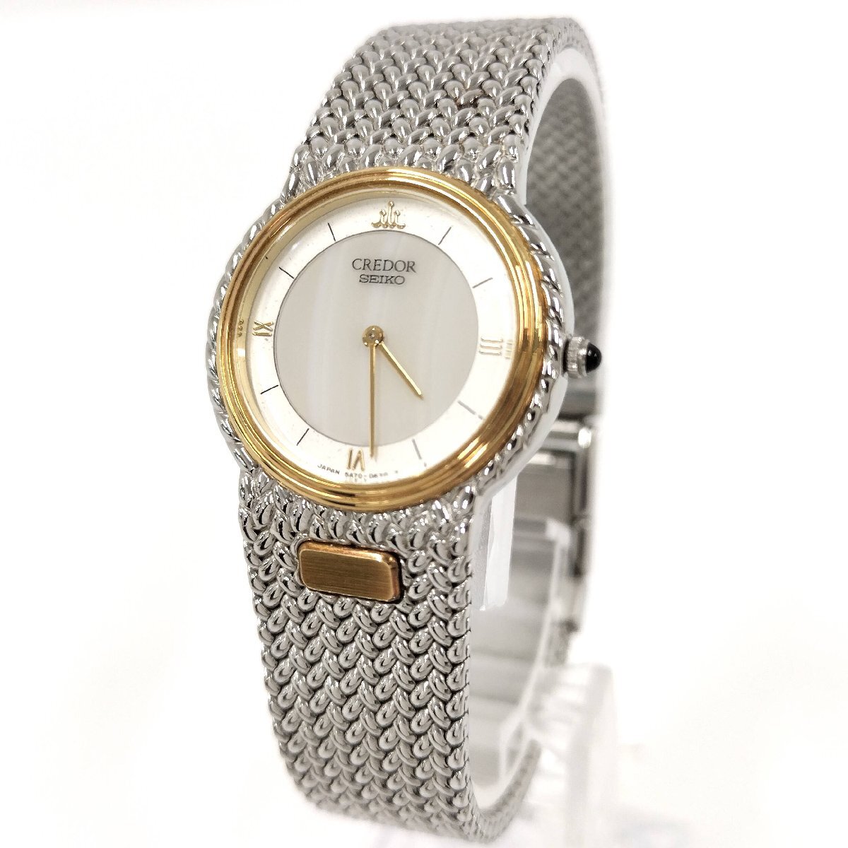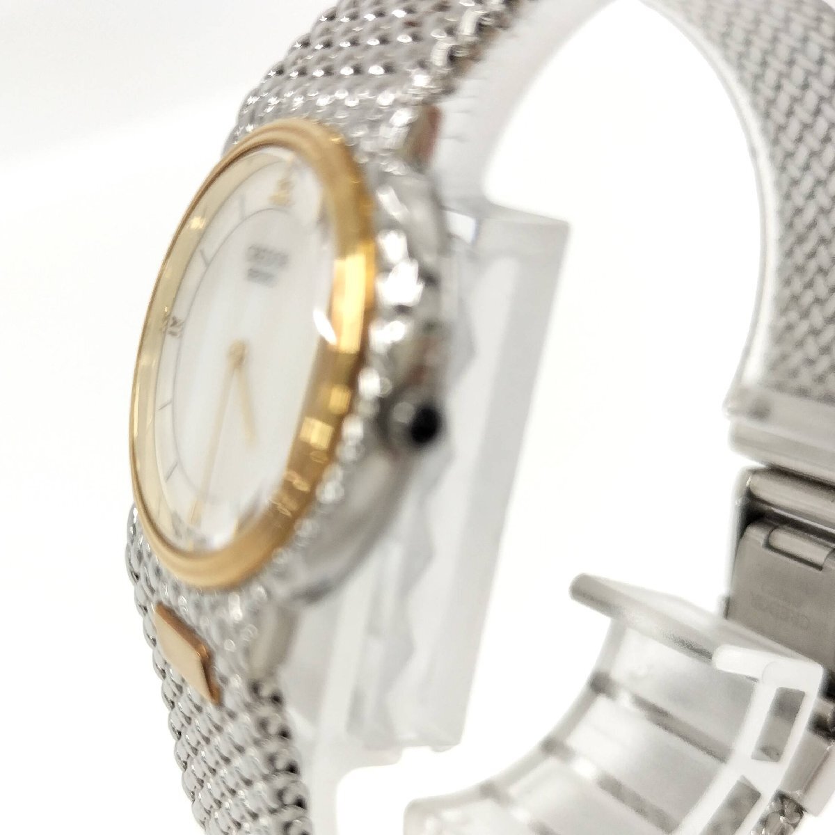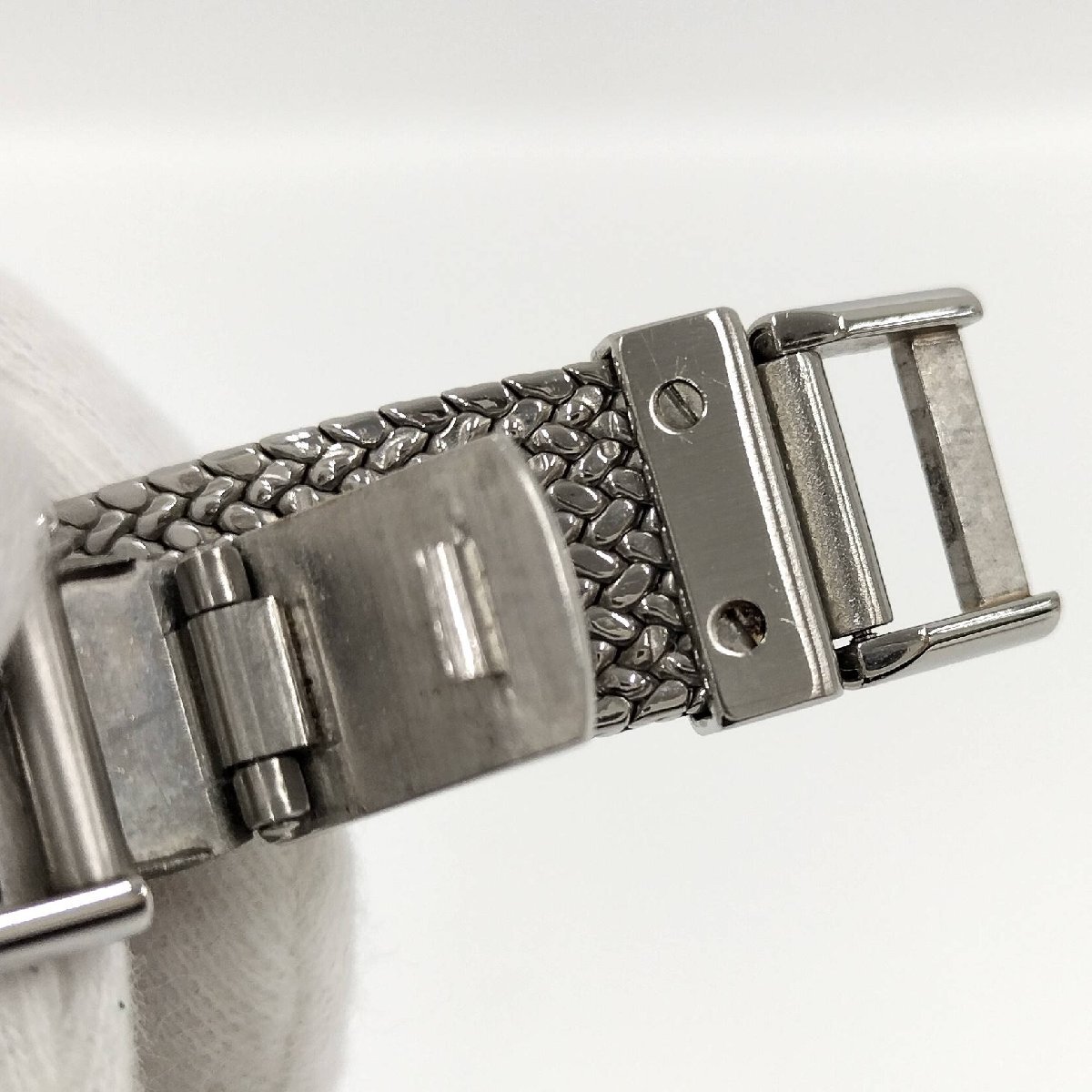 【状態ランク】中古AB 【サイズ】最大直径約25mm ※リューズ除く 腕周り:最大約17cm 【詳細】 ・動作確認済み。 ・風防に傷、スレは見当たりませんが、ベゼルやブレスにやや小傷やスレ、汚れなどございます。 ・針に若干ダメージございます。 ※詳細は画像をご確認下さい。 ※保管時に電池切れが発生した場合、電池交換の為、発送までに5~7日程度頂きます事、ご了承をお願いします。 ムーブメント:クォーツ 【付属品】無し 【弊社番号】99250000026152[ne]um57 |