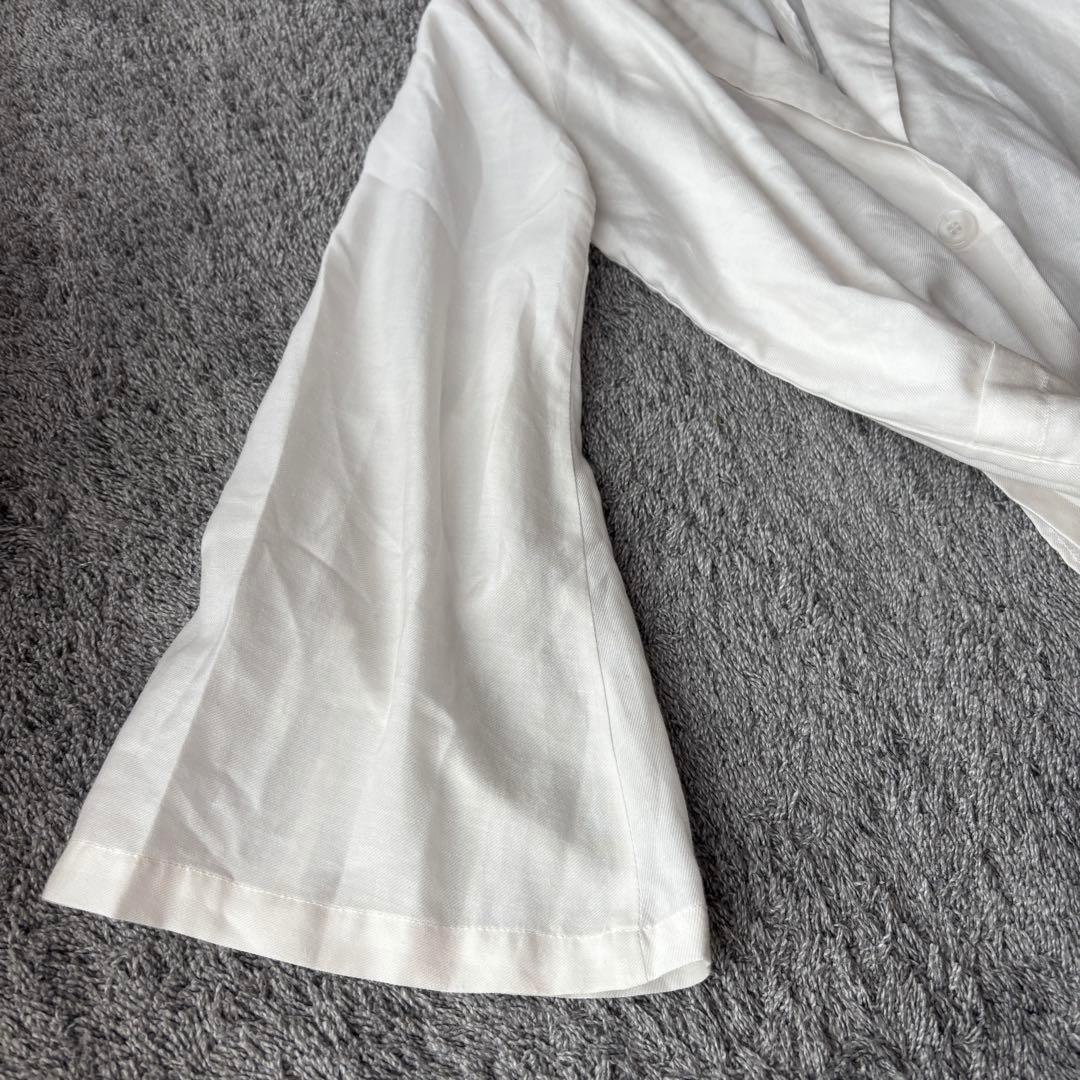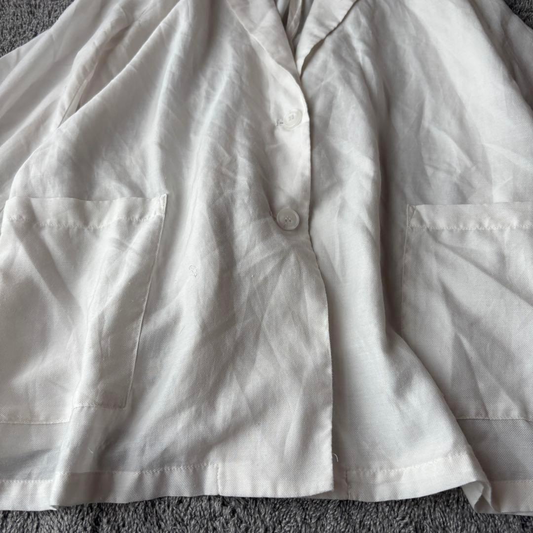軽やかなホワイトのテーラードジャケット、前面ポケット付きで実用性も兼ね備えています。