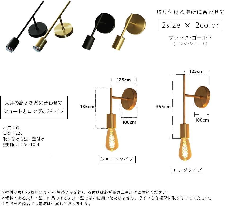 ウォールライト(ブラック、ショートタイプ) 北欧 ブラケットライト 壁掛け 照明