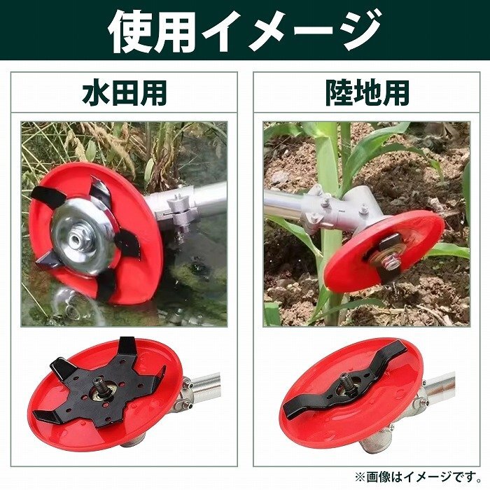 5枚刃(水田用)と2枚刃(陸地用)の2種類のブレードで、除草の使い分けが可能です。