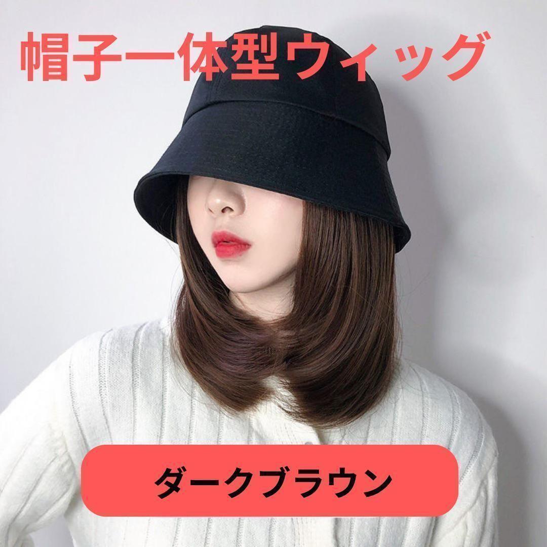 ハット ウィッグ 帽子ウィッグ 変装 女装  ダークブラウン wig673 6C2E0C