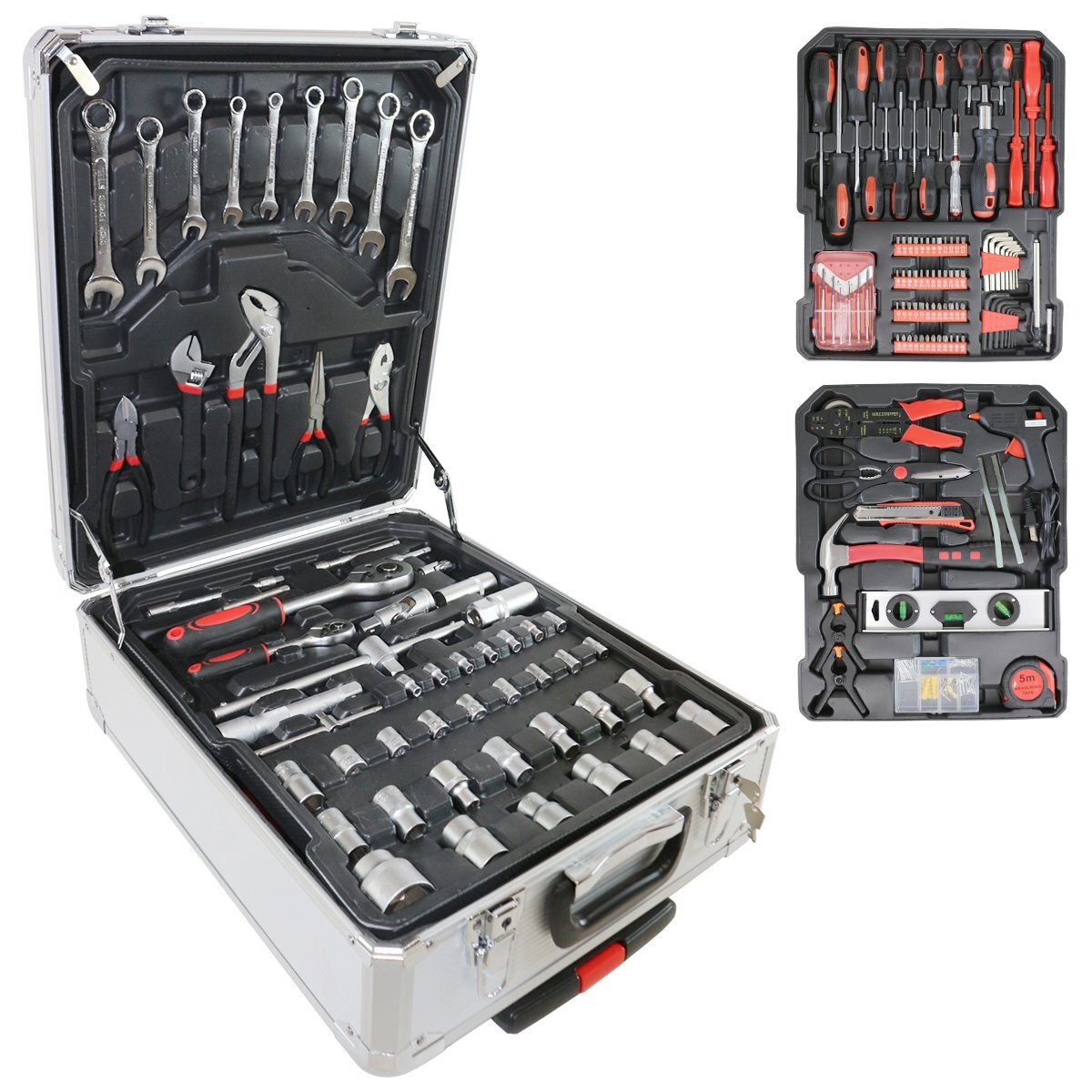 工具箱 工具セット 186pcs 持ち運び 工具ボックス アルミケース 車 バイク 自転車 整備 取付 ラチェット スパナ レンチ 家具