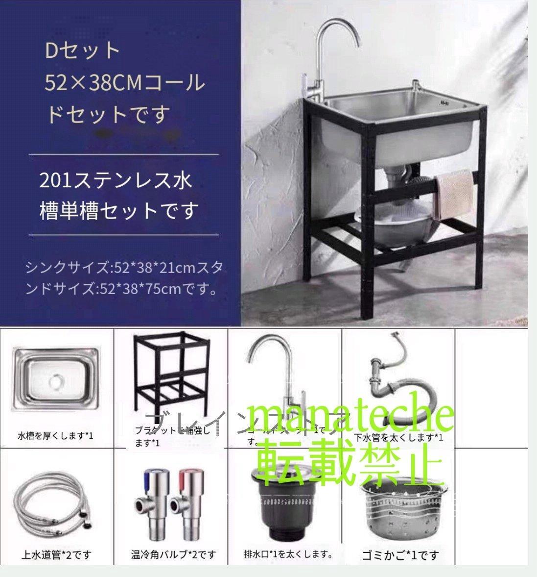 ★状態 :新品 ●カラー:画像参照 ●素材:ステンレス ●シンクサイズ:52*38*21CM ●タンドサイズ:52*38*75CM ※