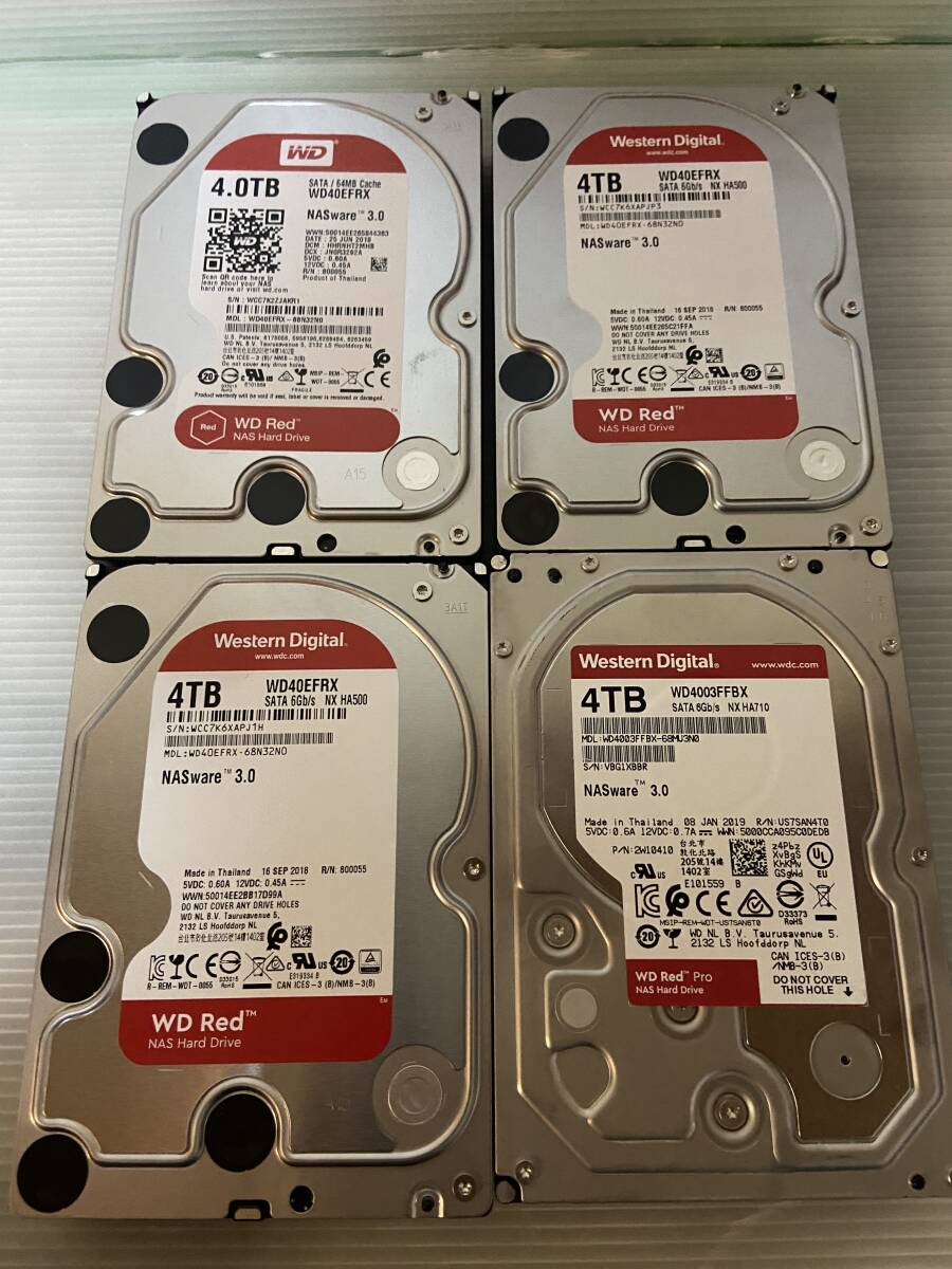 Western Digital WD red WD40EFRX /WD4003FFBX 4TB 4台 健康状態 正常 HDD ハードディスク 12-11-A4