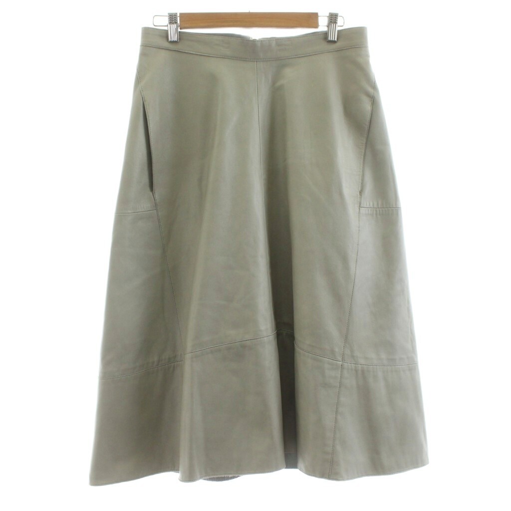 ドゥロワー Drawer ラムレザーフレアロングスカート ミモレ 羊革 裏地シルク 38 グレー 6524-299-0765 /KU レディース