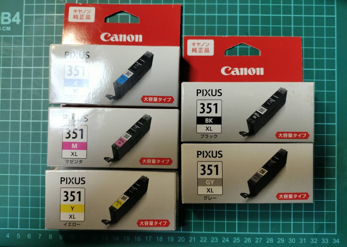CANON純正BCI-351XL系5色(C×2/M×2/Y×3/BK×3/GY×3)13個+BCI-350XLPGBK×1個 合計14個
