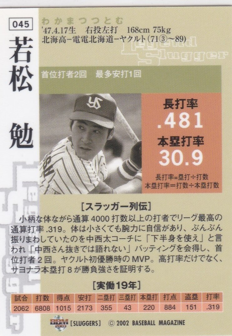 ●2002BBM/スラッガー列伝【若松 勉】レジェンドスラッガー No.045:ヤクルト R