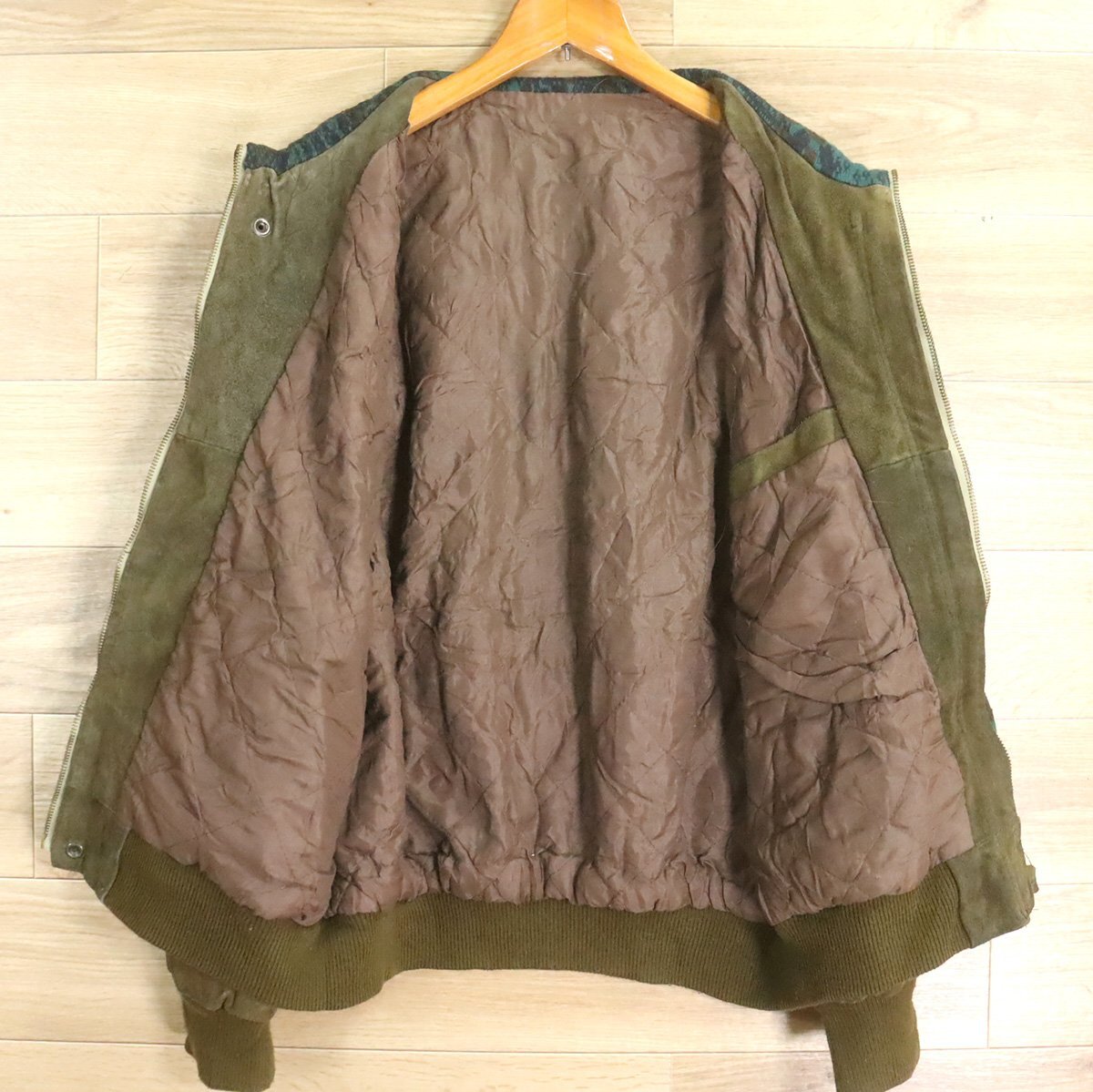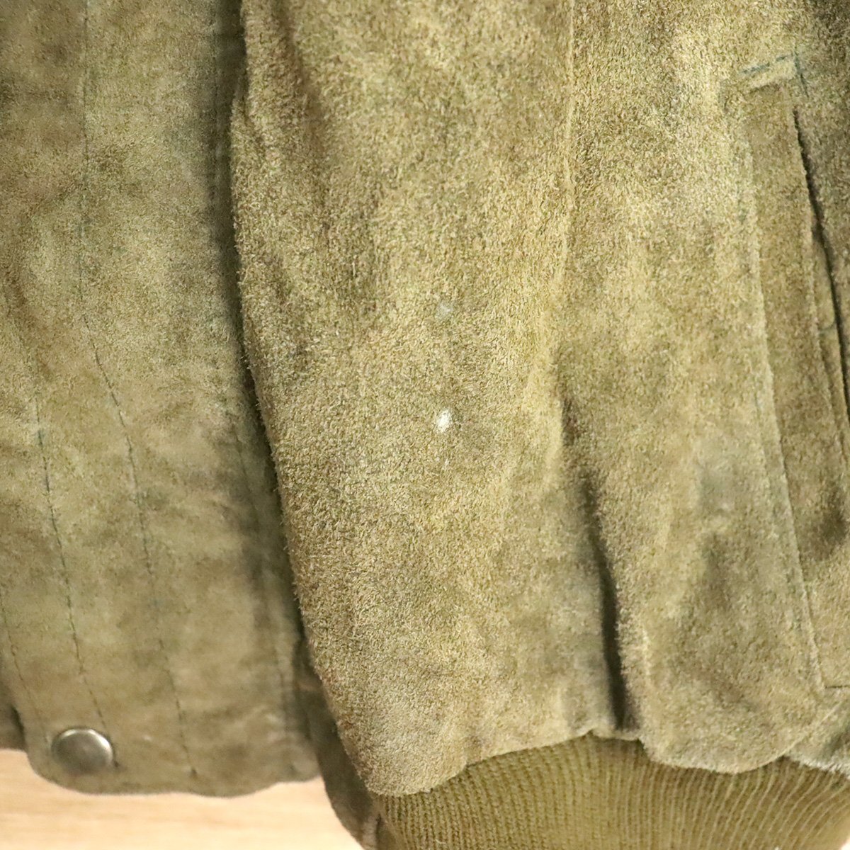 中古品です。使用感があります。袖やフロントなど全体の所々にスエード特有の擦れとアタリと汚れ、背中にキズがあります。
