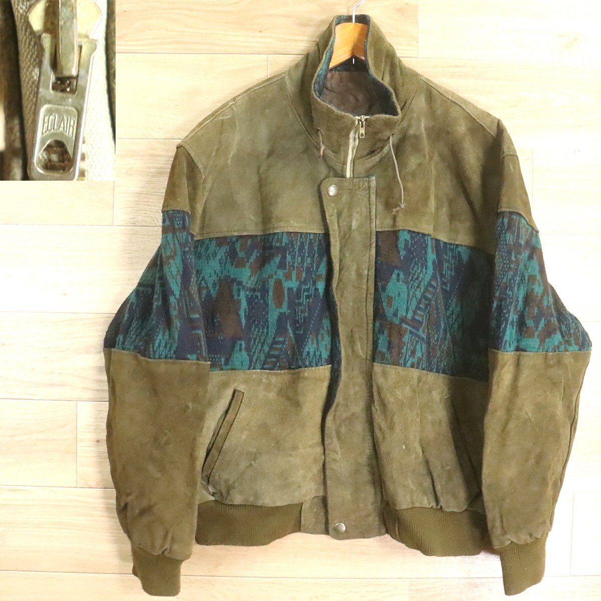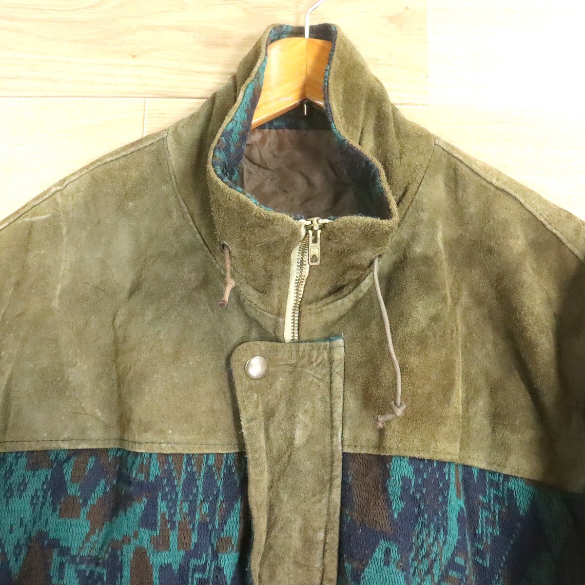 \2O/D12.5-2 ユーロ古着 スエードレザージャケット 本革 革ジャン 皮ジャン レザーブルゾン スウェード 切り替えデザイン メンズ